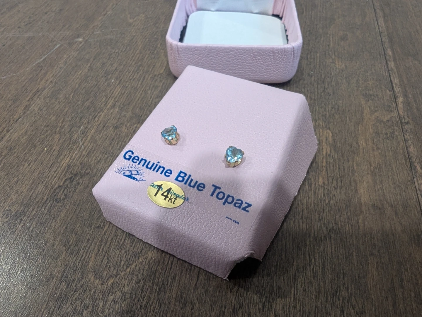 Brand new 14kt yellow gold Topaz heart shape earrings for sale. Heart shape earrings with blue topaz, screwback studs, natural gemstone – birthstone for December. Great gifts. $90 FIRM.