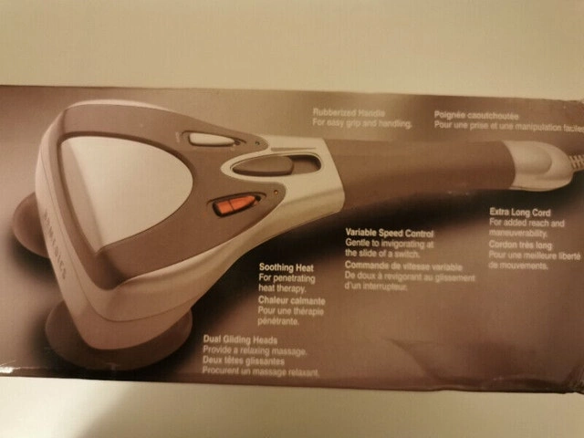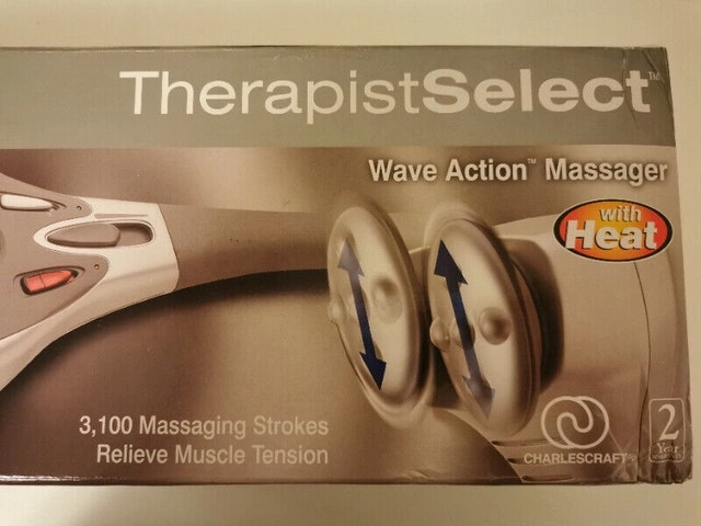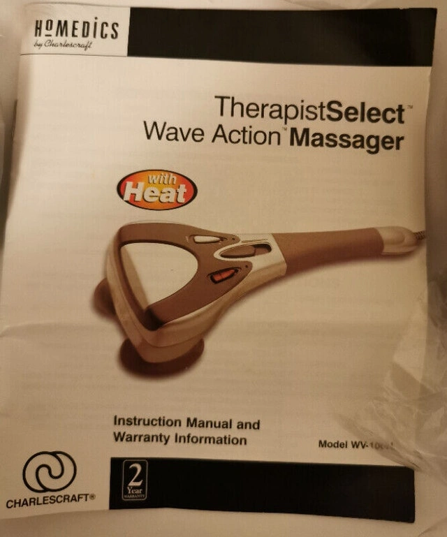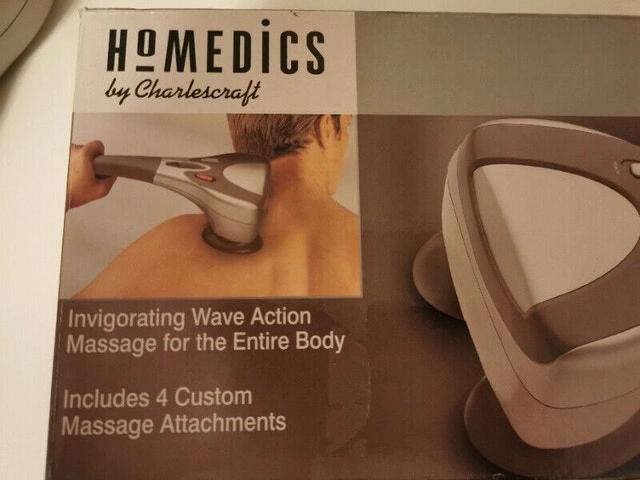 Homedics TherapySelect Full Body Wave Action Massager with heat includes 4 sets of custom attachments. Offers 3100 massaging strokes to relieve muscle tension. Condition is used, like new. Cash accepted. For sale by owner.