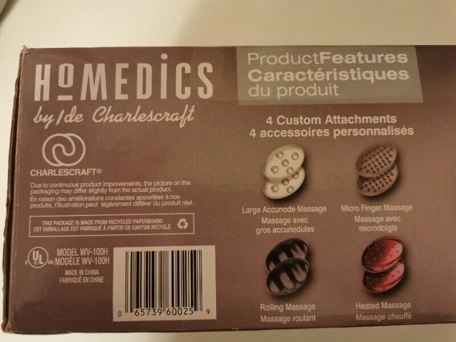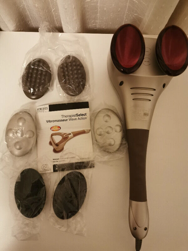 Homedics TherapySelect Full Body Wave Action Massager with heat includes 4 sets of custom attachments. Offers 3100 massaging strokes to relieve muscle tension. Condition is used, like new. Cash accepted. For sale by owner.