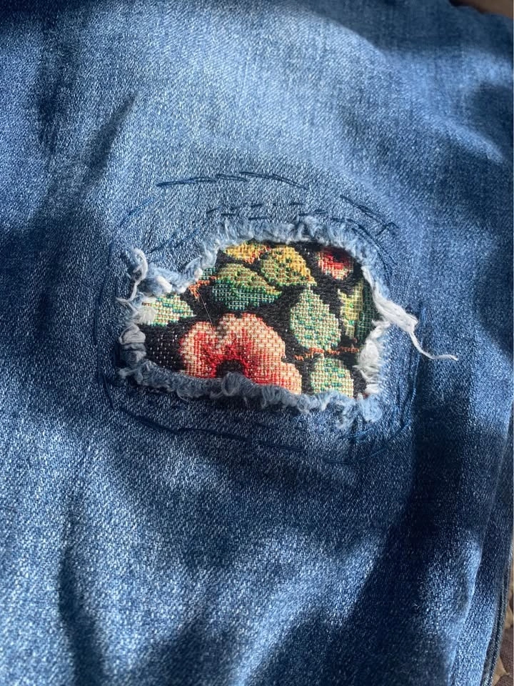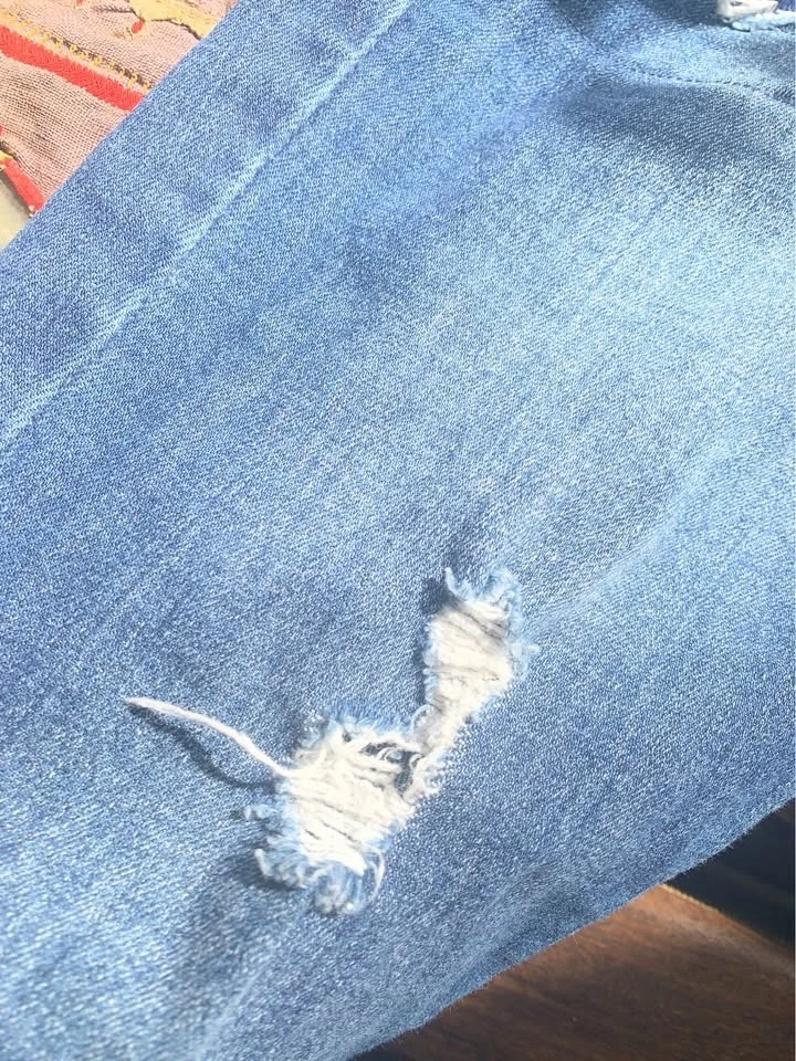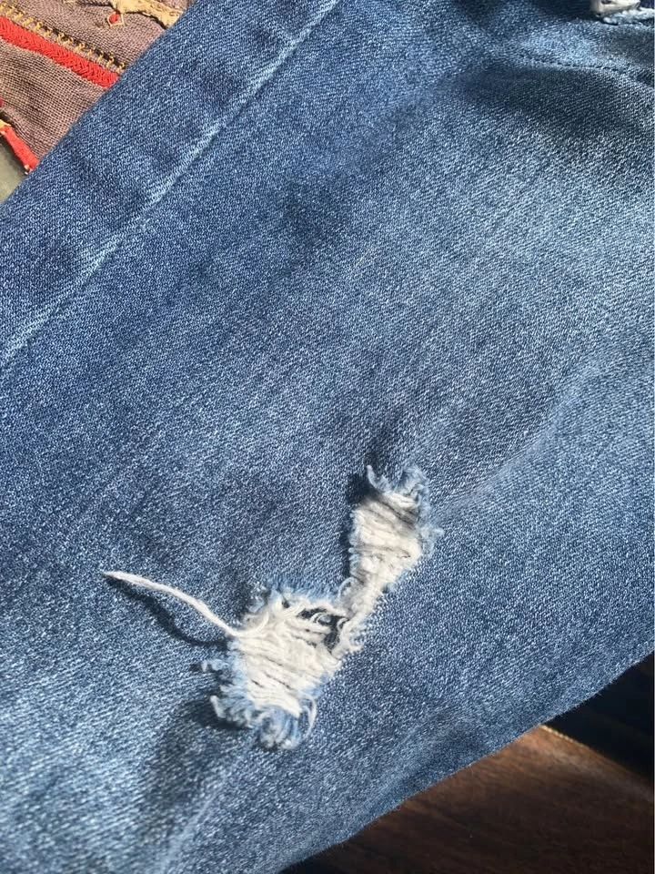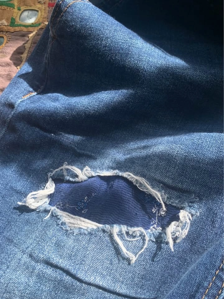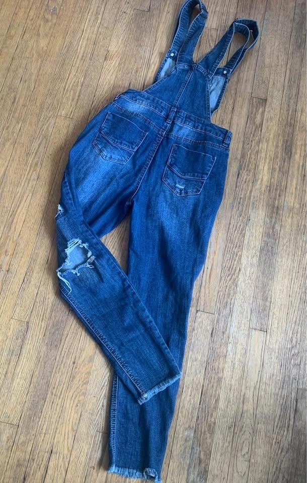 Sweet vintage denim overalls. They are very comfortable, nicely distressed with sweet little patches. Features a pocket on the front bib as well as the back. Excellent shape, very clean. These are cotton denim with cotton patches, meant to be a slim fit, not baggy. Bib pocket and pockets on backside. Nice raw hem. Waist 14.5” laying flat (29” around), inseam 25” (meant to be at ankle-ish, or to floor if you are shorter), rise 10”. Seems a bit of stretch. Super cute.