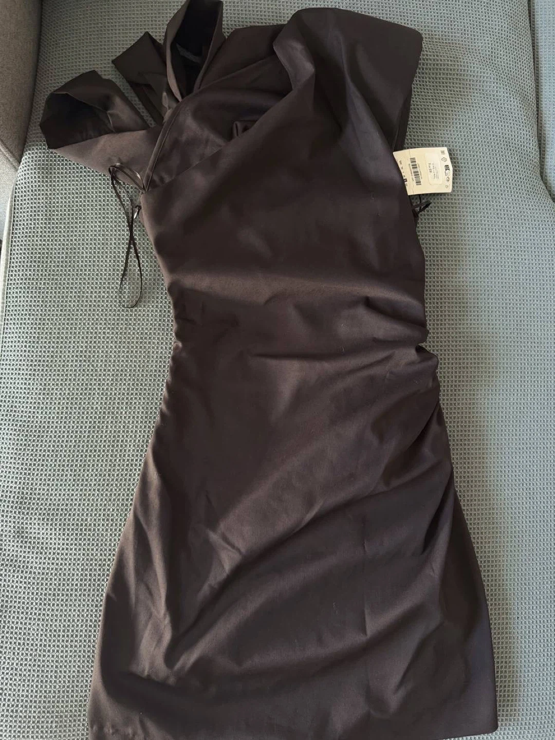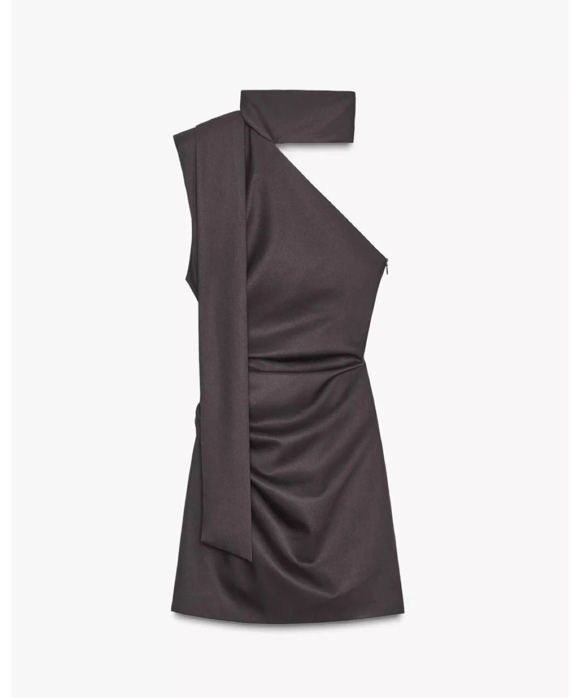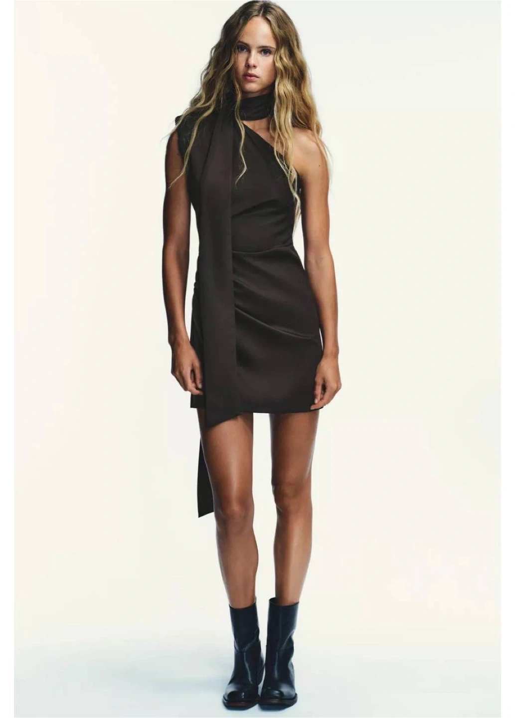Chic and modern mini dress from ZARA featuring an elegant asymmetric design with a built-in scarf detail. A sleek, minimal piece that creates a stylish, fashion-forward silhouette—perfect for evenings, events, or going out.