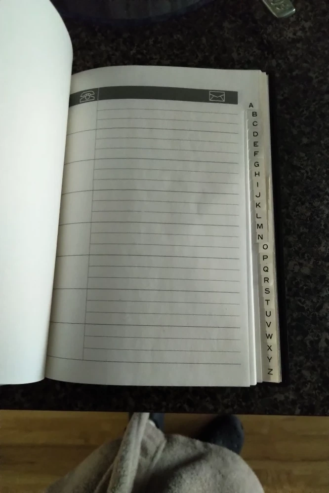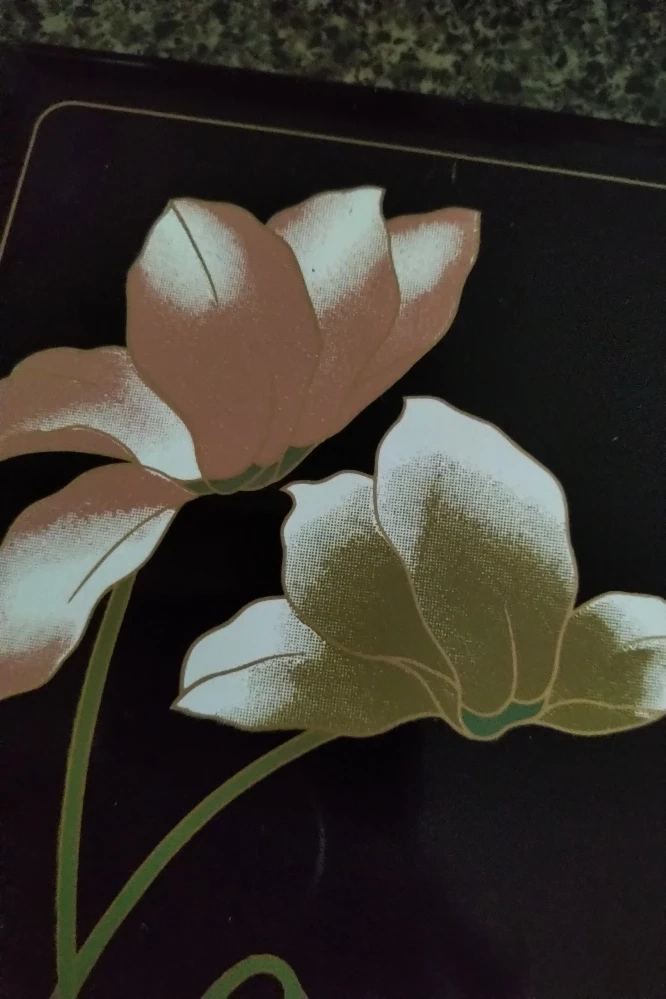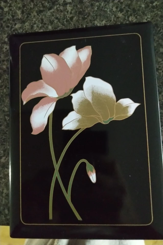 Beautiful floral design. Black lacquer finish. Alphabetical index. Unused pages. Great condition.