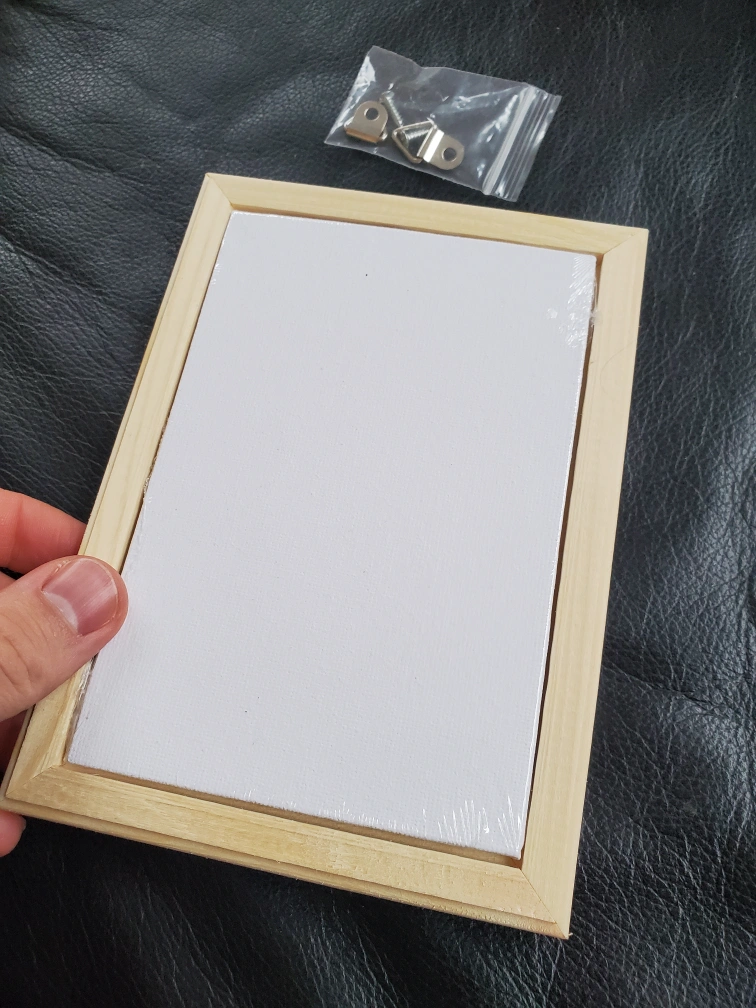 Miniature canvas perfect for arts and crafts. Stand alone or screw in hooks for hanging on the wall.