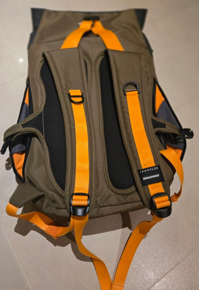 Selling a Crumpler roll-top backpack! It's in great condition and ready for a new owner. The forest green, light-canvas backpack features a unique water resistant sealed roll-top design with orange interior a durable construction; has 2 hidden jewelery pockets on opening flips, comes with a seperate camera pouch; Perfect for everyday use or travel!
