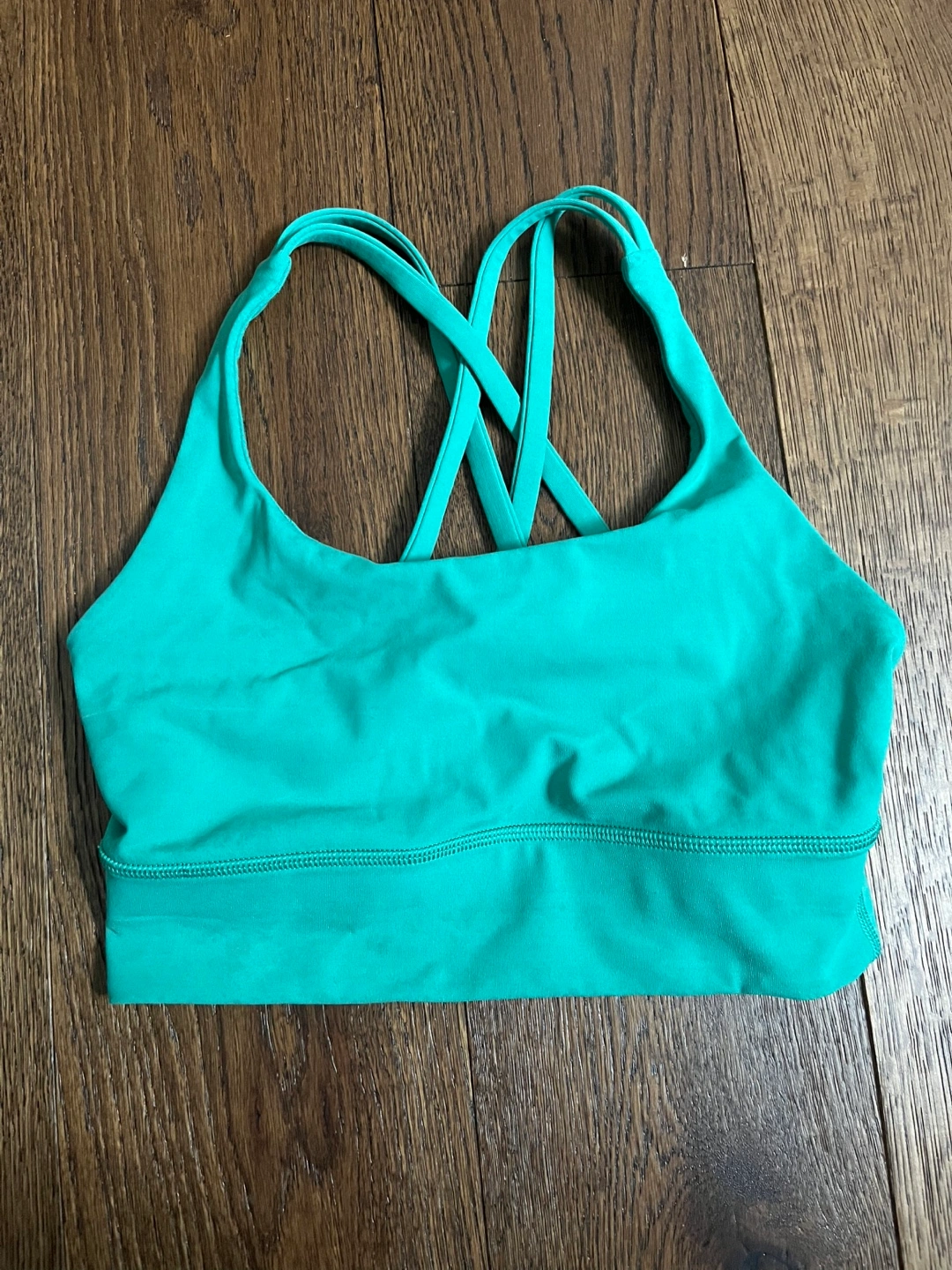 Lululemon Energy Bra. Cross-back design. Beautiful aqua green colour. Excellent support.