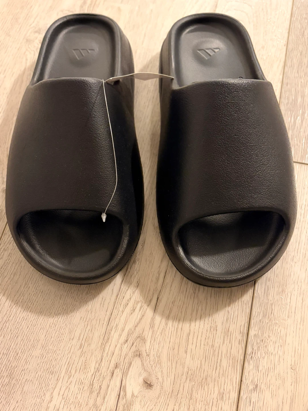 Black Adidas Yeezy Slides. Size 10 US (275 CHN). Made in Vietnam.