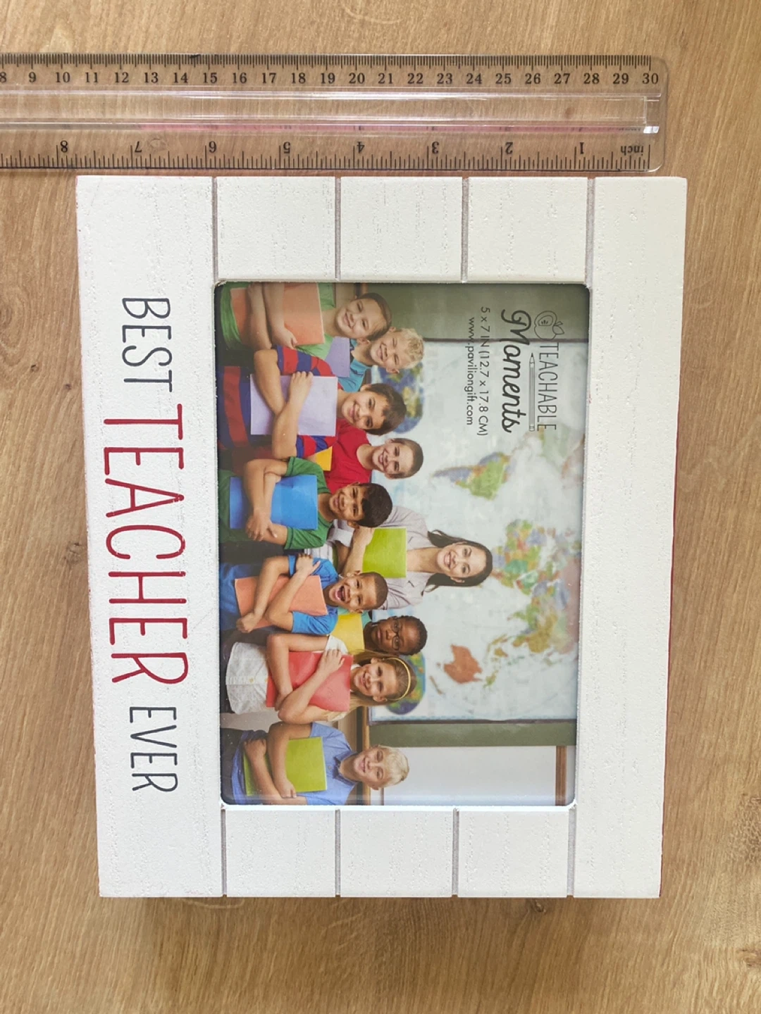 This white wood "Best Teacher Ever" photo frame is from Teachable Moments. It's designed to hold a 5 x 7 inch photo. The frame is perfect for displaying a favourite memory from the school year!