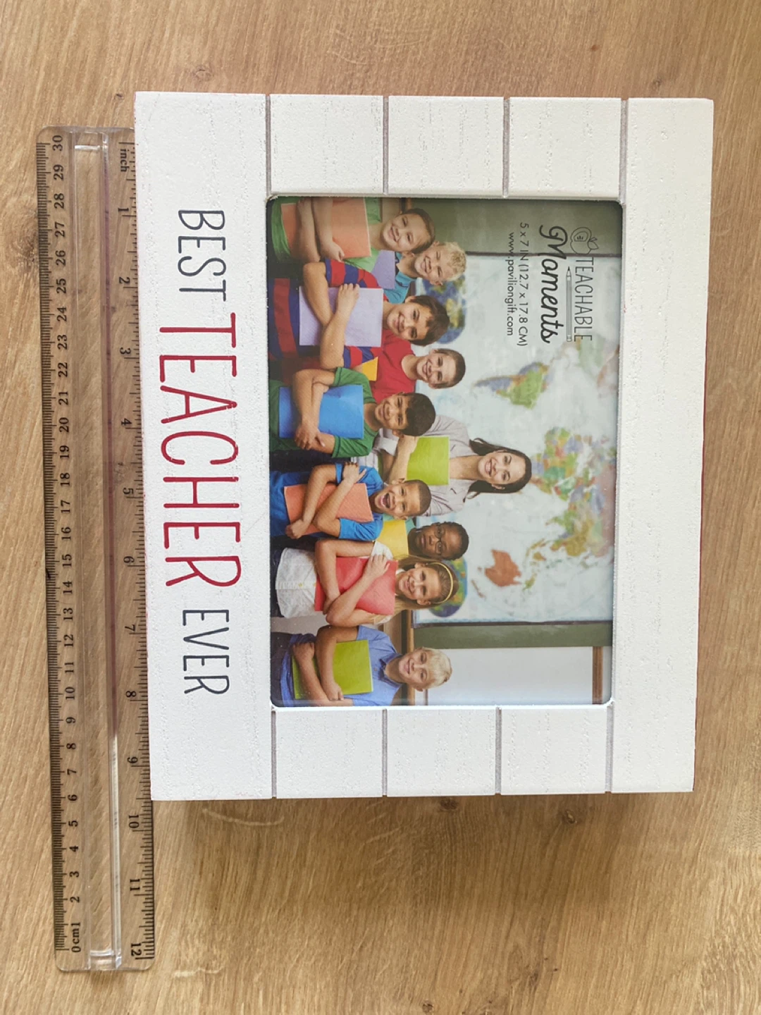 This white wood "Best Teacher Ever" photo frame is from Teachable Moments. It's designed to hold a 5 x 7 inch photo. The frame is perfect for displaying a favourite memory from the school year!