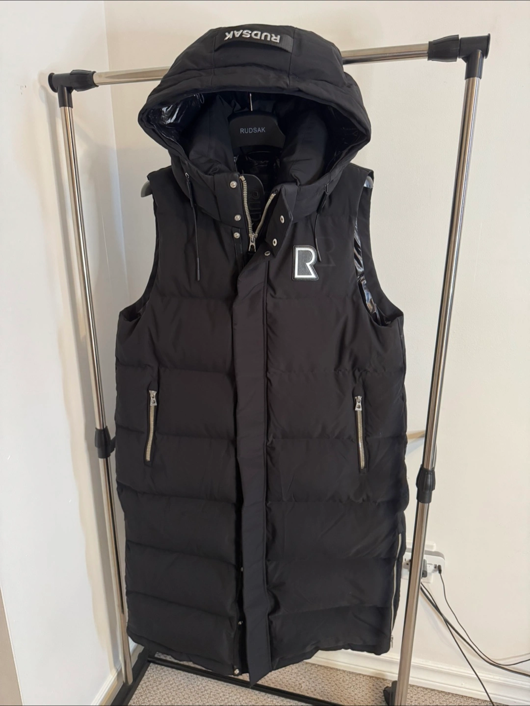 Selling a Rudsak black puffer vest! It's brand new and perfect for layering during the cooler months. The vest features a hood and a zipper closure, making it both stylish and functional. It's a great addition to any wardrobe!