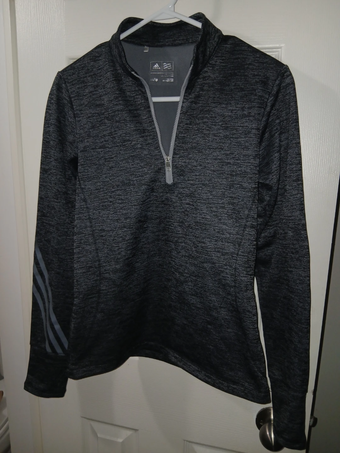 Adidas half-zip pullover in size XS. It's a stylish and comfortable athletic wear option, perfect for workouts or casual wear!