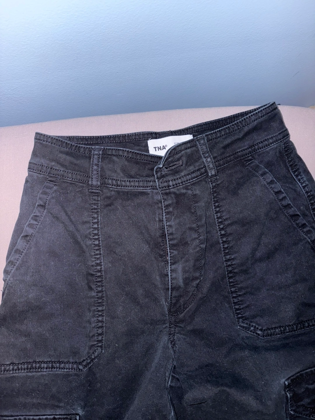 Selling a pair of TNA black cargo pants. They are in great condition and ready for a new home! Perfect for a casual and stylish look.