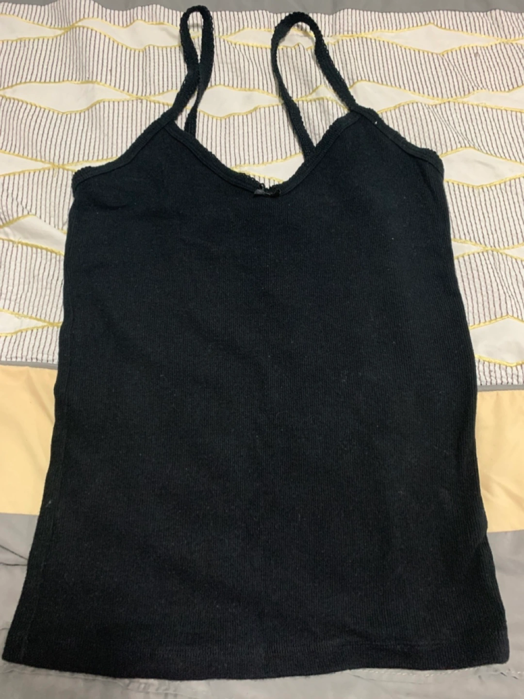 169Black ribbed cami top. Size small. Spaghetti straps. Good condition.