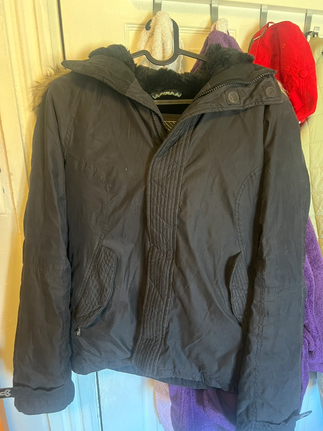 335Selling my TNA winter jacket in excellent used condition. • Size: Women’s Small (fits true to size) • Color: Black with faux fur–trimmed hood • Super warm inner lining with soft faux fur and quilted interior • Multiple pockets and adjustable cuffs • Perfect for cold Toronto winters – very comfy and stylish Clean, no rips or stains, from a smoke-free, pet-free home. Originally from Aritzia.