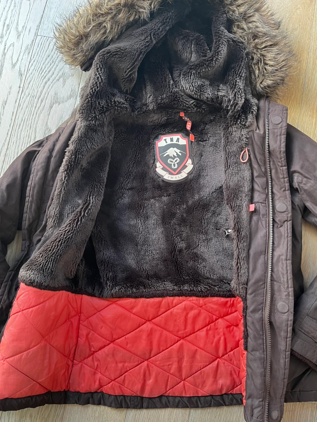 1000+Cozy TNA winter jacket in gd condition. No issues 🤍size small 🤍faux fur-trimmed hood. 🤍magnetic clasps Pick up only Cash only