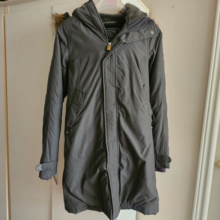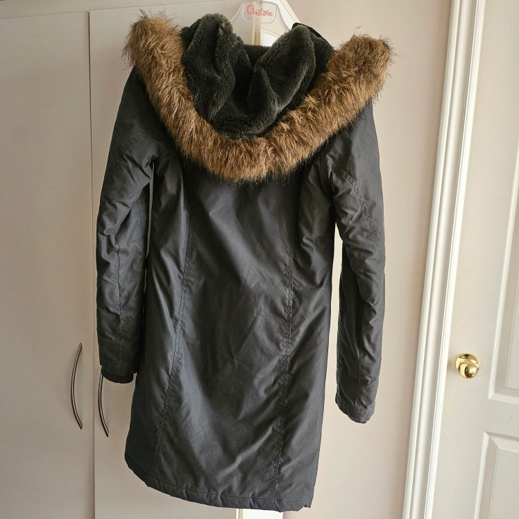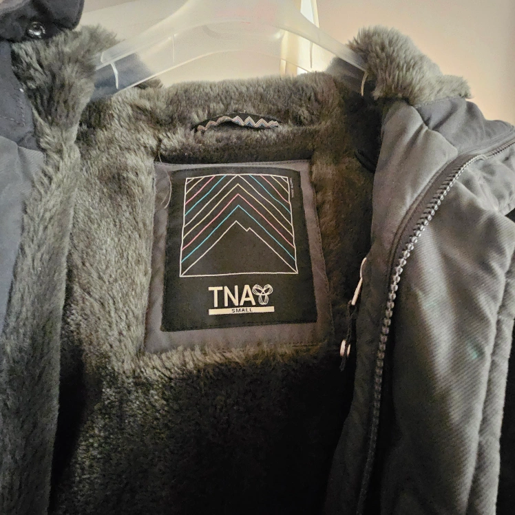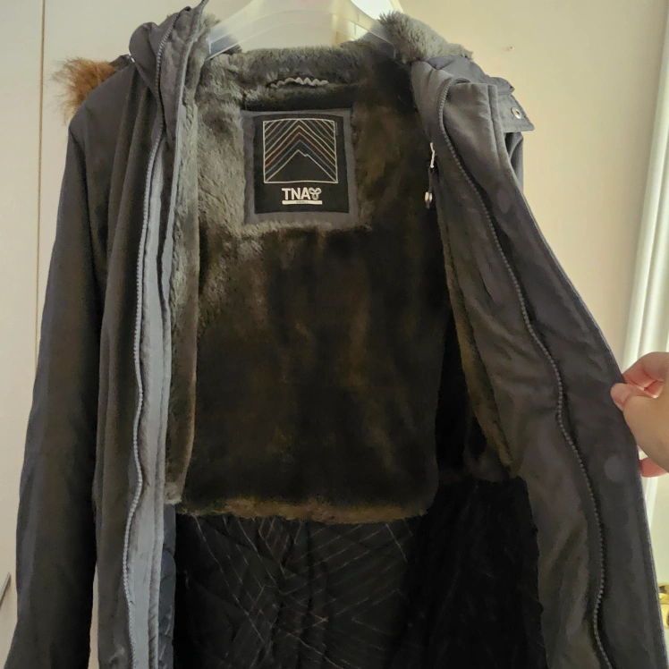 TNA winter coat in a stylish charcoal colour! It has a faux fur trim on the hood and a warm lining. XS but can probably fit up to S. Perfect for those chilly Canadian days! In good used condition with no defects. PS- the model in the sample photo is very similar but slightly different. Retailed for about $300. Open to reasonable offers. Meetup in Mimico or Markham.