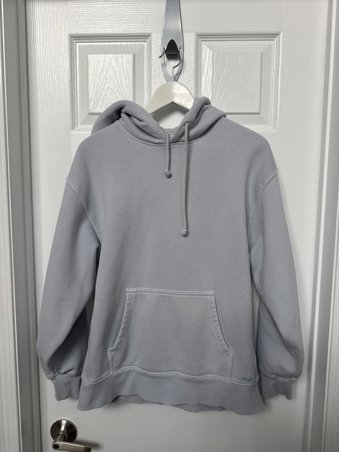 Light grey boyfriend fit hoodie. Cozy fleece material. Great for layering or wearing alone. Only worn twice, like brand new