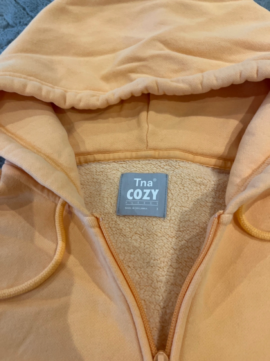 Women's Tna Cozy zip-up hoodie. Peach colour. Size large. Soft fleece interior. Front pockets. Excellent condition.