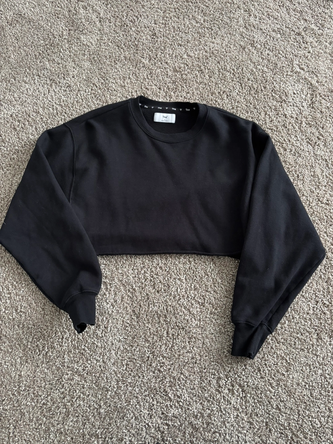 77Black cropped sweatshirt. Relaxed fit. Long sleeves. Crew neck. Size 2.