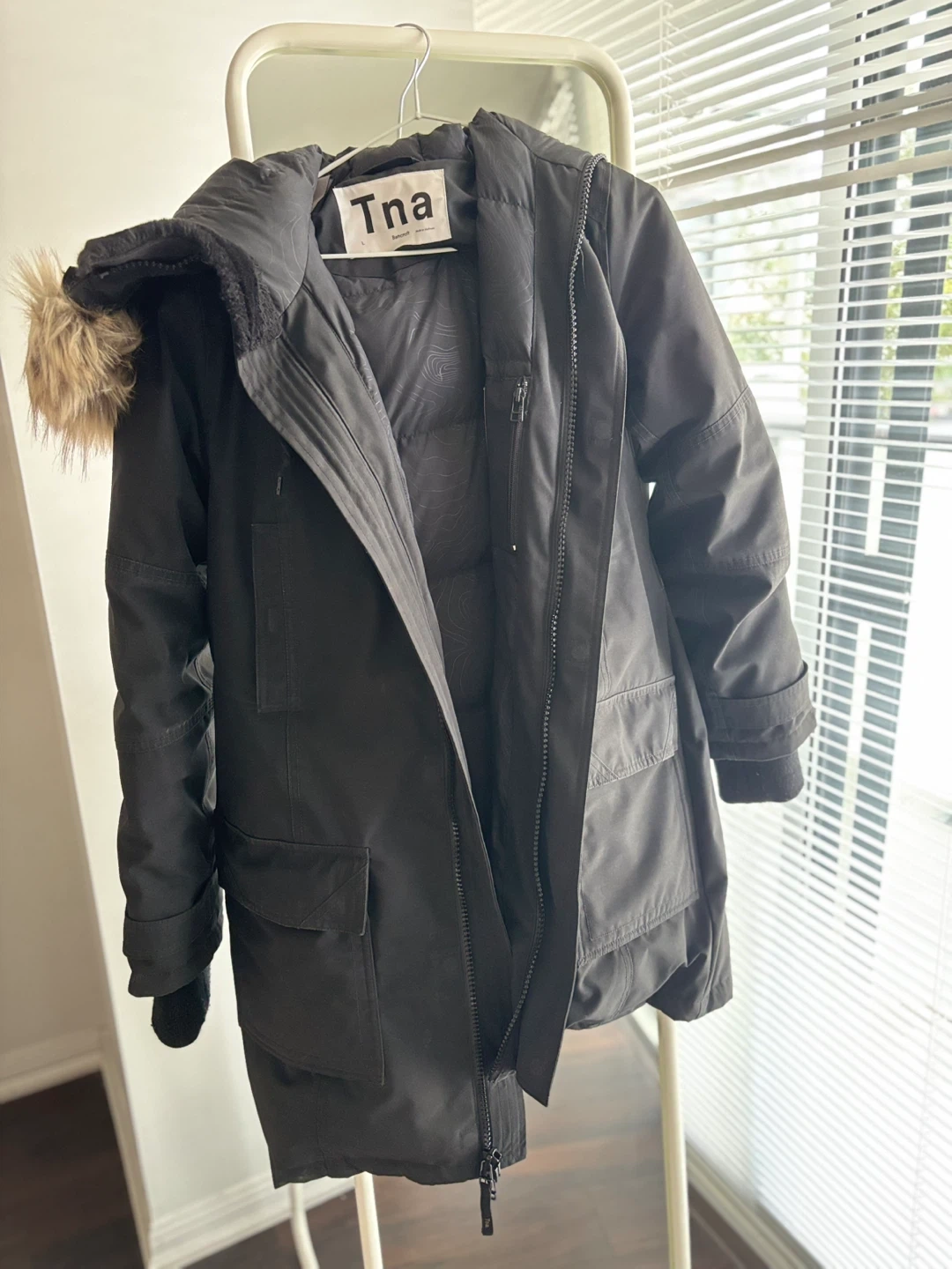 10Selling a Tna parka in black. Size M. Machine washable. In great condition, super warm and perfect for upto -20 degrees! Worn only two seasons.