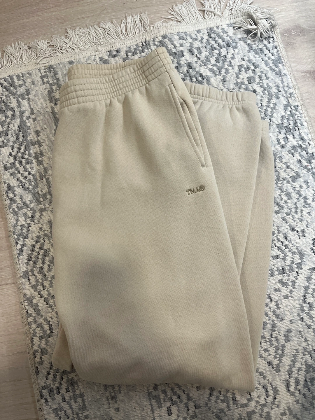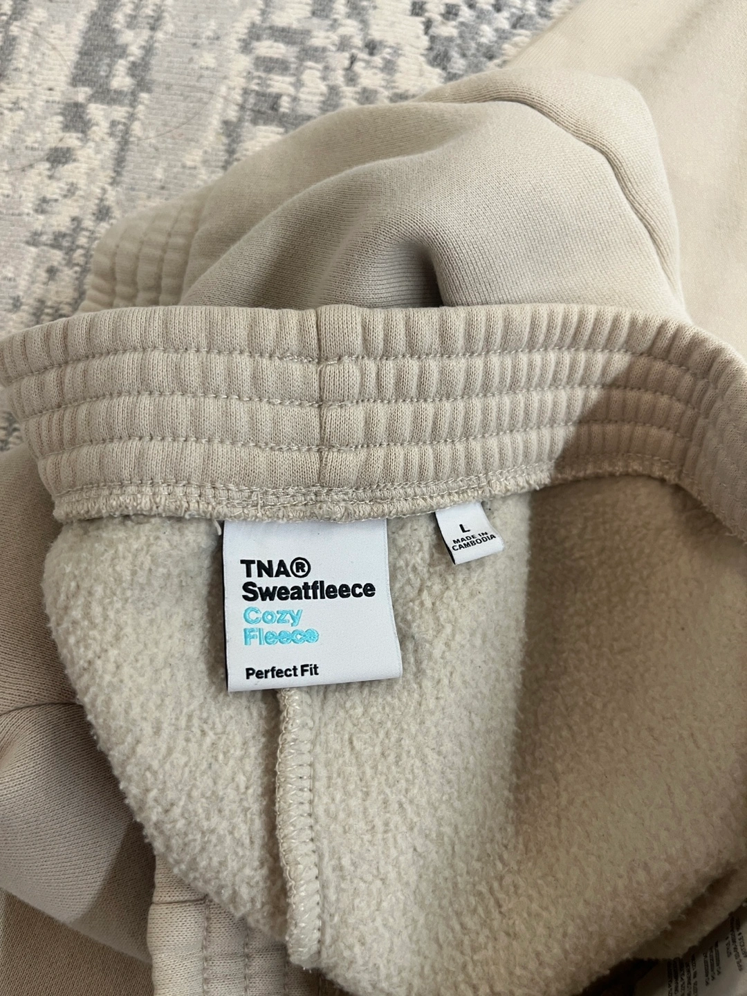 Selling a pair of TNA Sweatfleece Cozy Fleece Perfect Fit pants in size large! They're in great condition and ready for a new home. The material is super soft and comfy, perfect for lounging around or running errands. These pants are a perfect fit! (Size L)