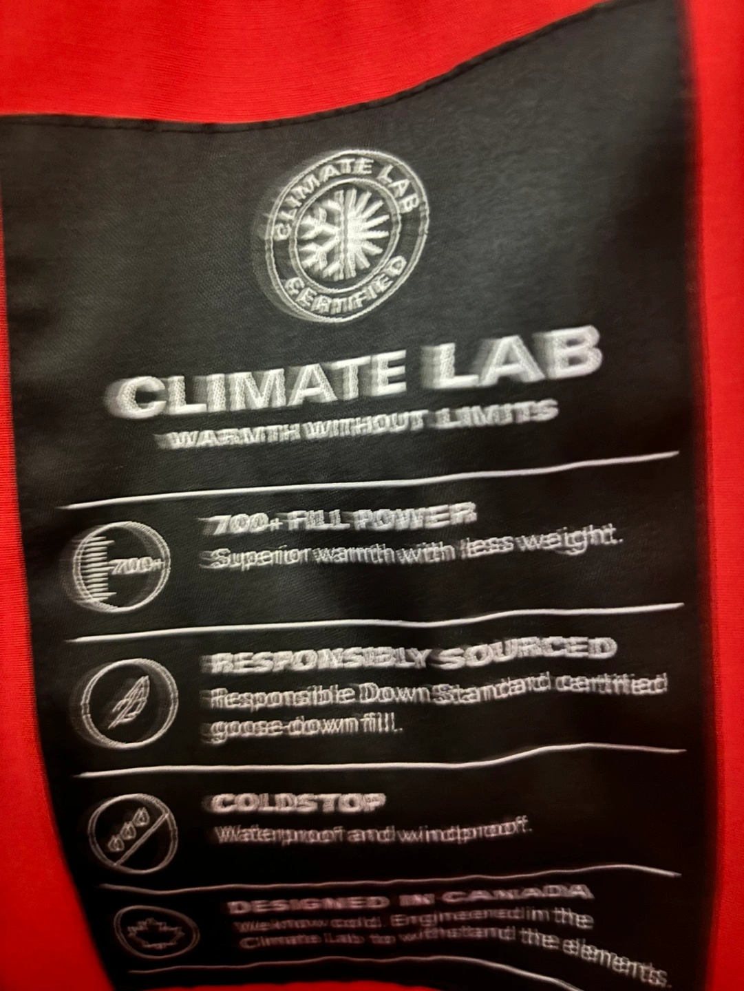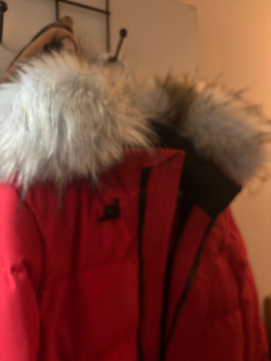 87Warm winter parka. Features a faux fur-trimmed hood. 700 fill power responsibly sourced down. Waterproof and windproof. Designed in Vancouver, Canada. Size large.