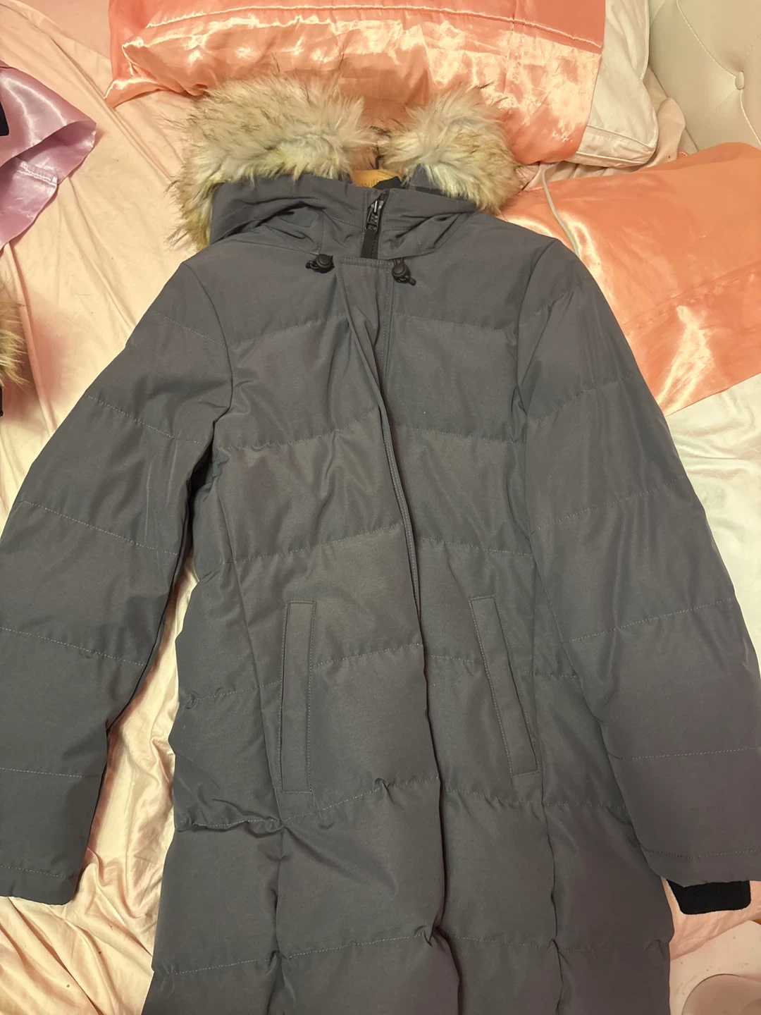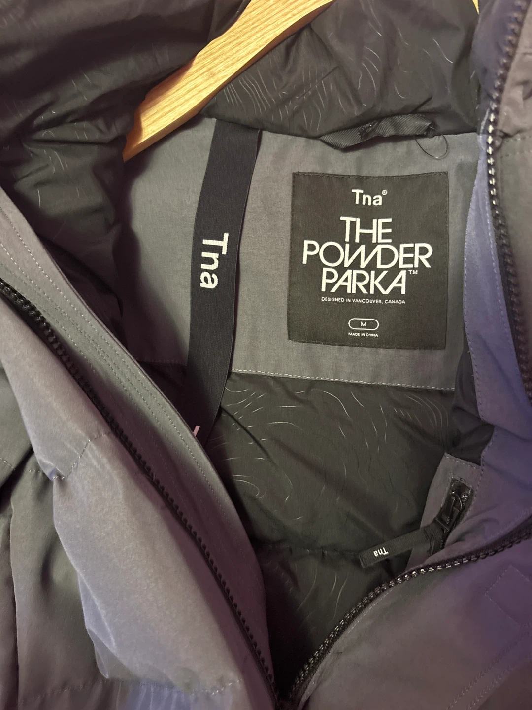 Selling a TNA The Powder Parka in size medium. It's in great condition and ready to keep you warm this winter! The colour is a lovely grey, and it's designed in Vancouver, Canada