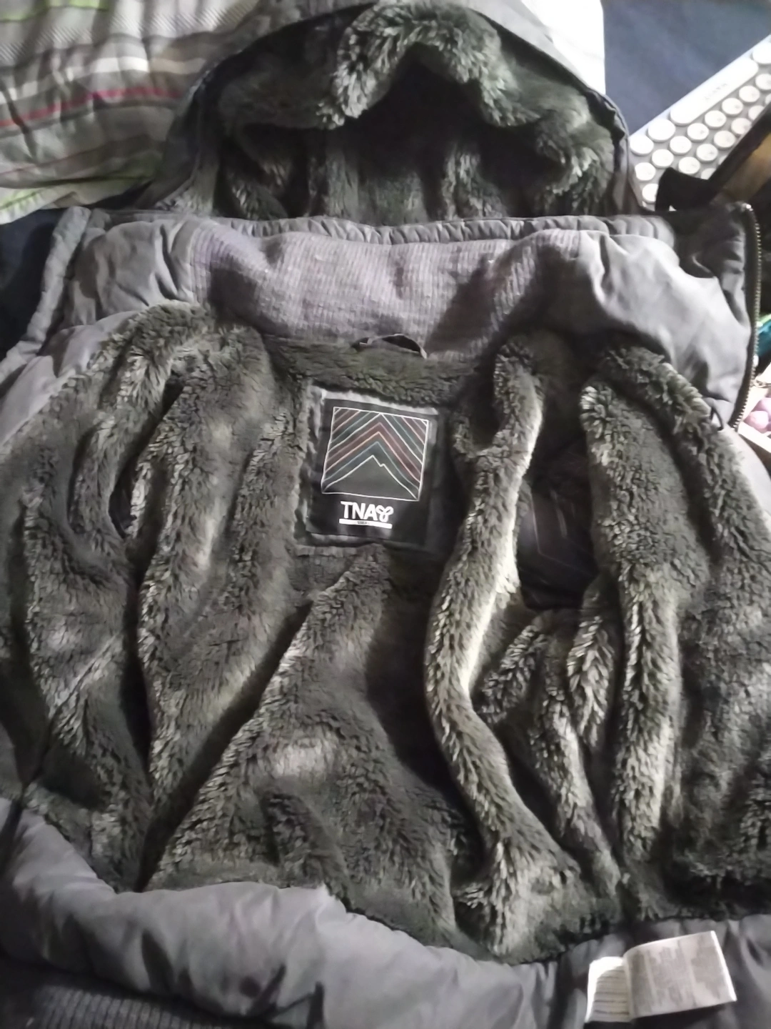 this is the wnter jacket smal size of TNA. dark grey without fur trim