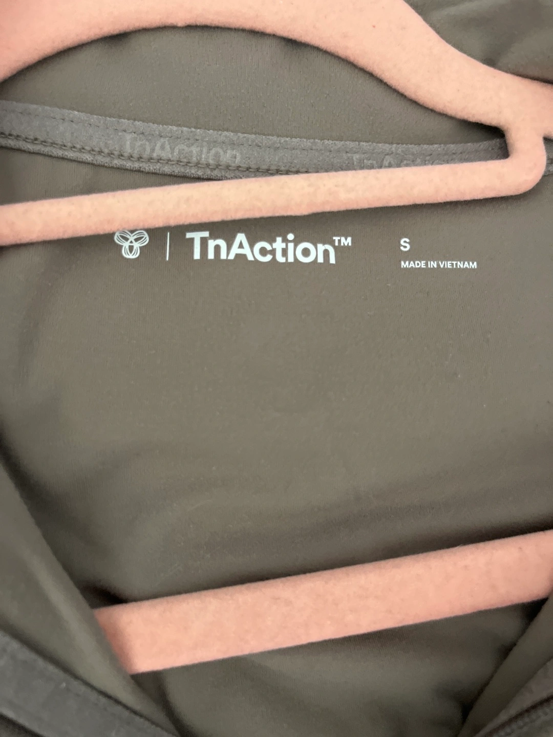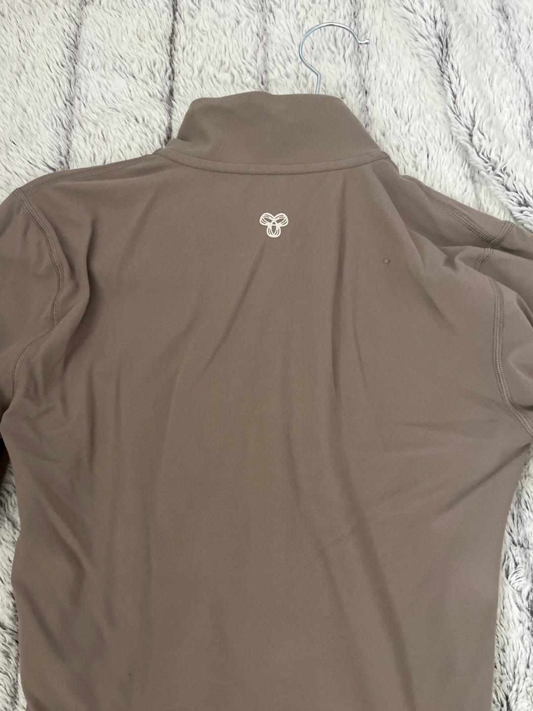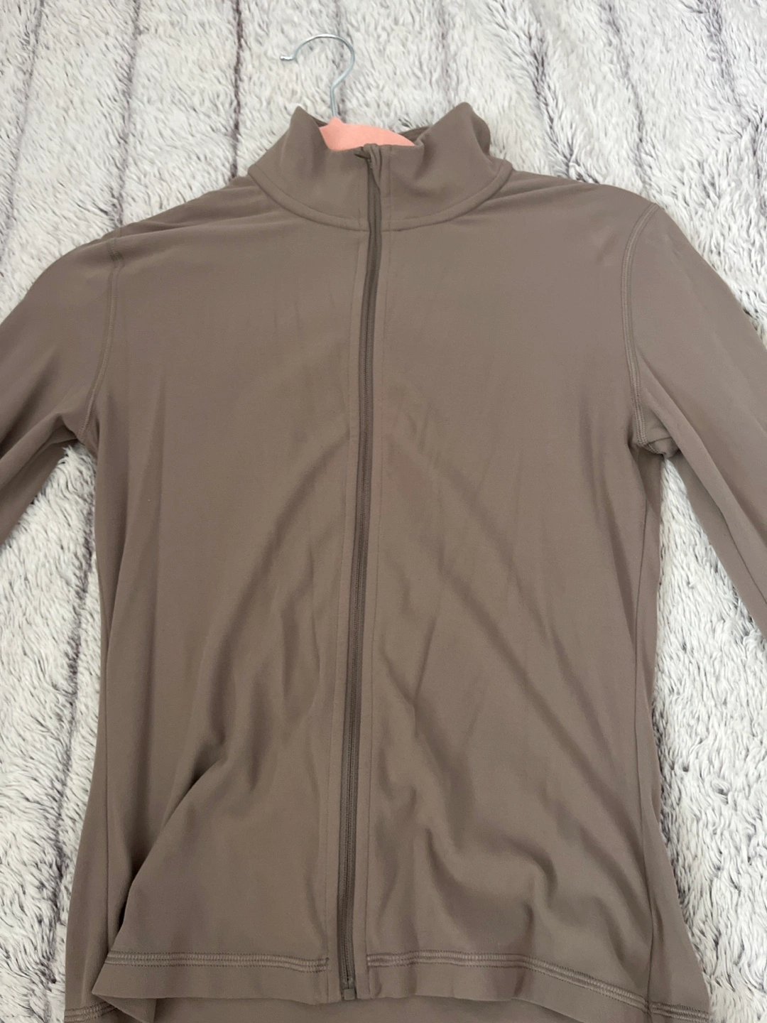 Selling a TNAction zip-up jacket in size small. It's a great layering piece for workouts or just running errands. The colour is a neutral, earthy tone that goes with everything