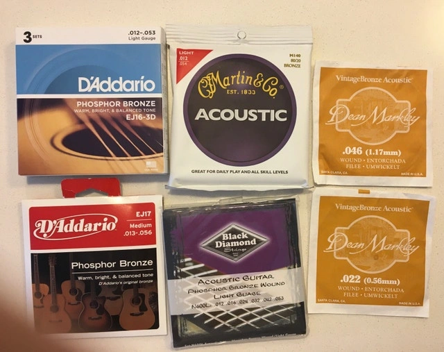 Hi there! I'm selling a large lot of brand new guitar strings, perfect for both acoustic and electric guitars. This includes 6 sets of acoustic strings, 1 set of electric strings, and several spares. They retail for about $60! You'll find a variety of gauges and brands like D'Addario, Martin & Co., Dean Markley, and Black Diamond. This is a great way to stock up and keep your guitars sounding their best. The specific sets included are: D'Addario: EJ16-3D, EJ17; Martin & Co: M140; Dean Markley: NickelSteel Electric MED 2505B, Vintage Bronze Acoustic; Black Diamond: Acoustic Guitar, Phosphor Bronze Wound Light Gauge. The ad is still up, so it's available. Thanks!