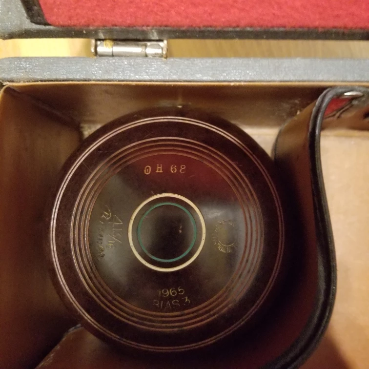 Selling a vintage lawn bowling set that comes with its original carrying case. The set includes four lawn bowling balls and a Terry's Bowls Measure. All items are neatly stored in a Christie brand case.