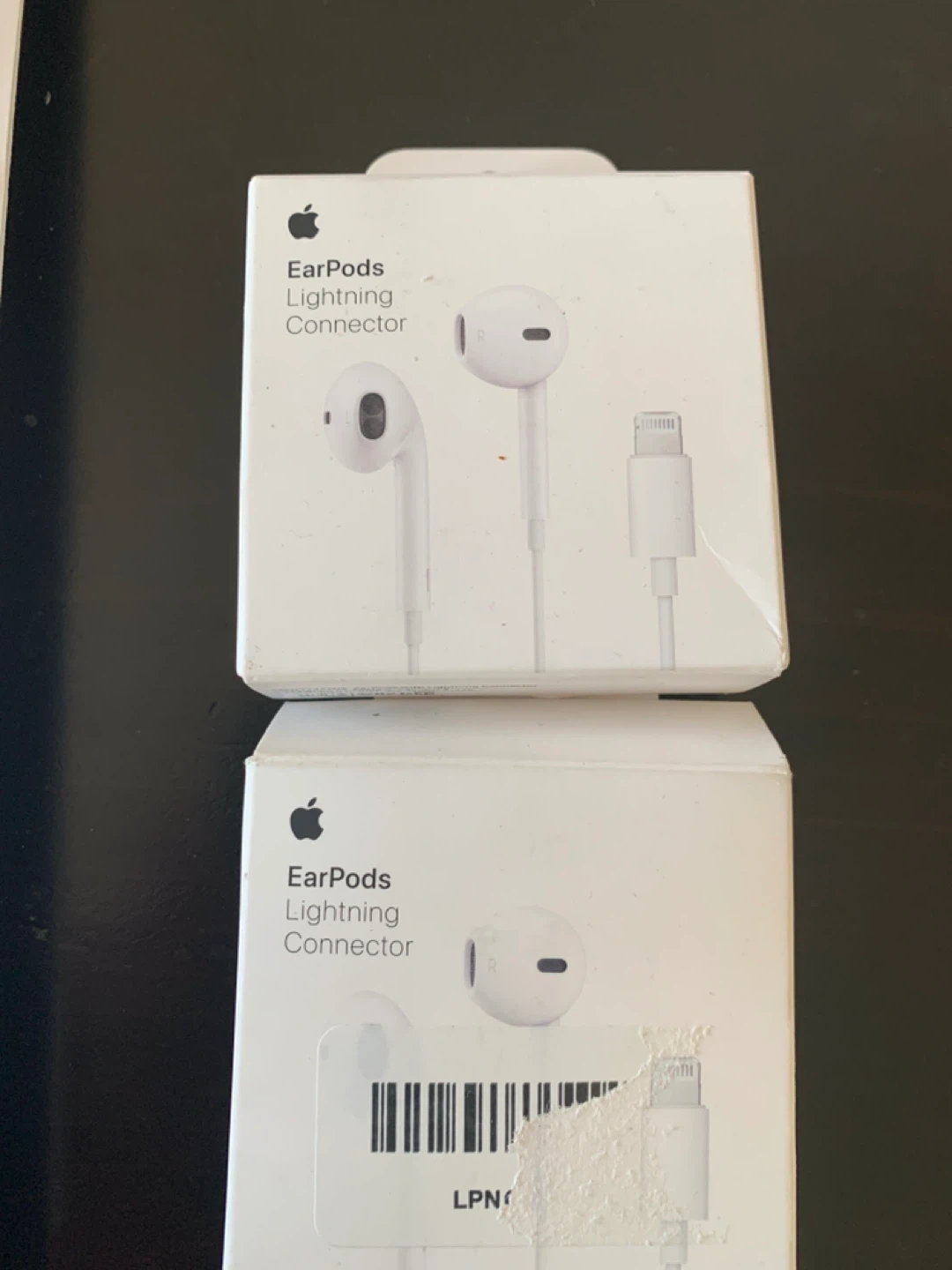 These are Apple EarPods with a Lightning connector. They're white and designed for devices with a Lightning port. Includes original box.