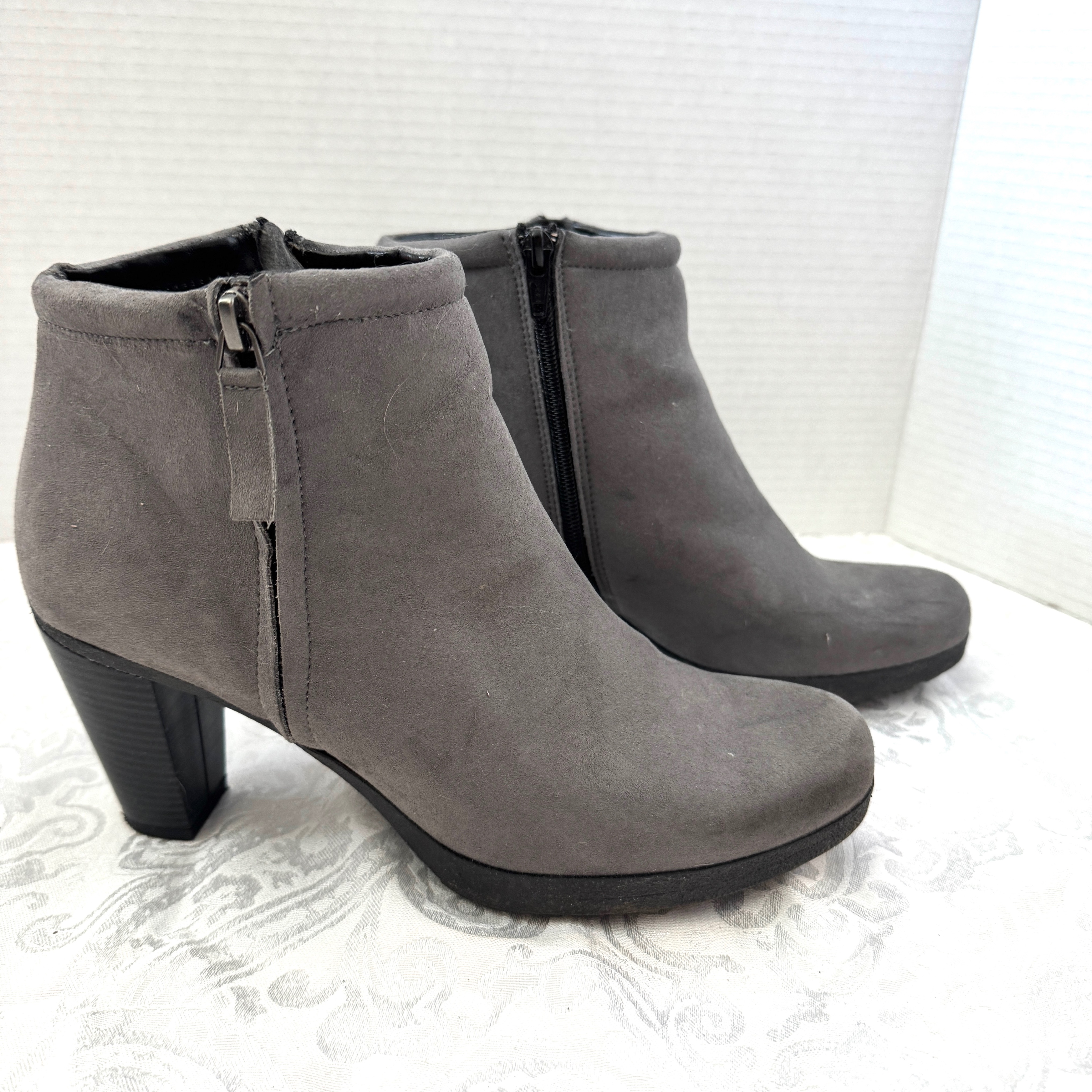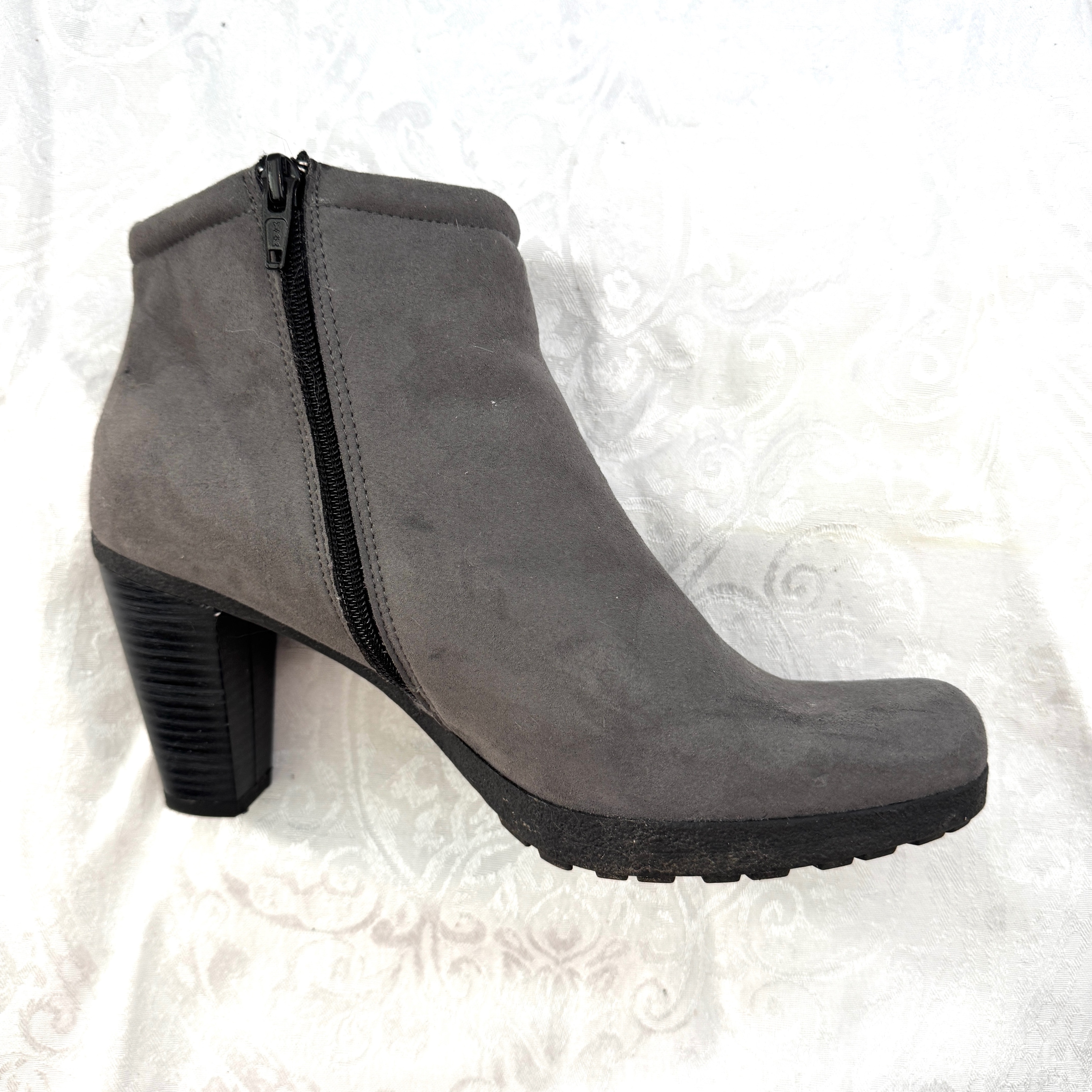 Grey Ankle Boots, Vegan suede leather, size 8.5/40