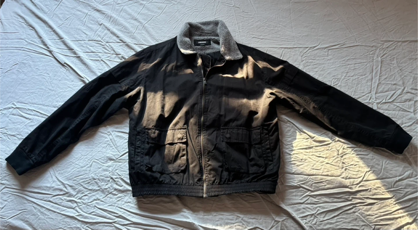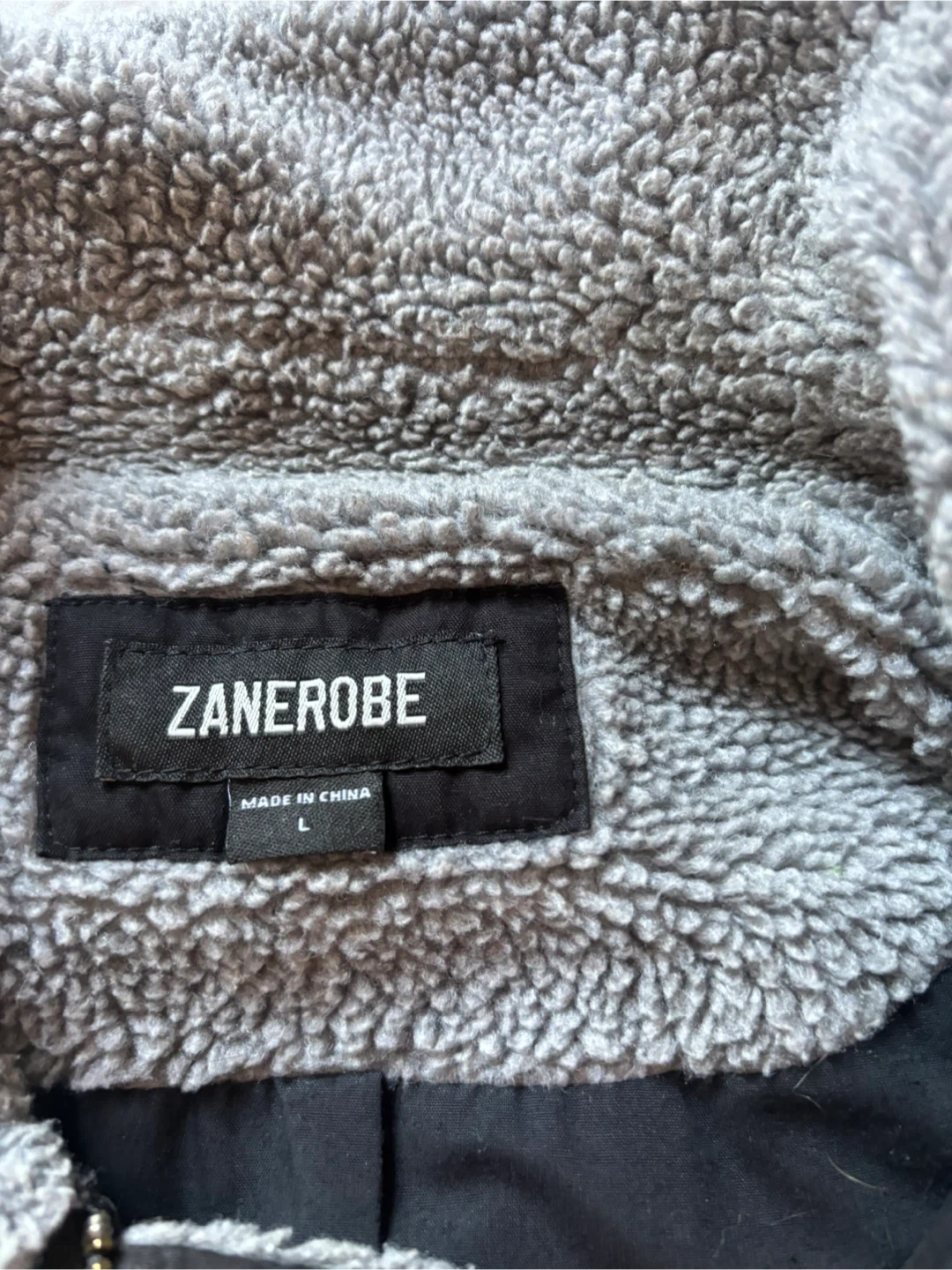 Selling a ZANEROBE jacket in size L. It's in great condition and ready for a new home! The jacket features a cozy sherpa lining and a stylish design, perfect for cooler weather.