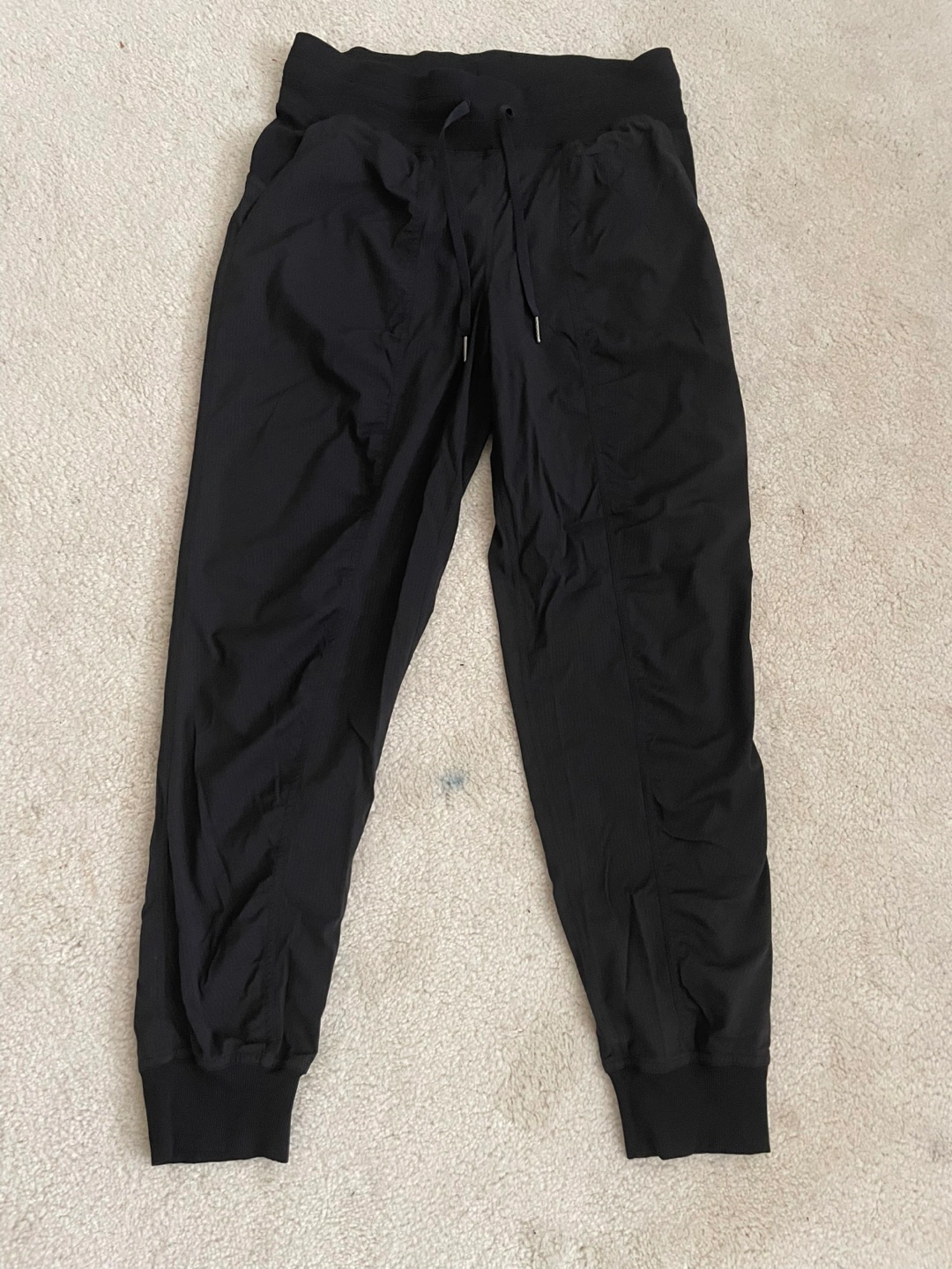 These are a pair of Lululemon black jogger pants in size 8. They're in great condition and ready for a new home! Perfect for workouts or just lounging around
