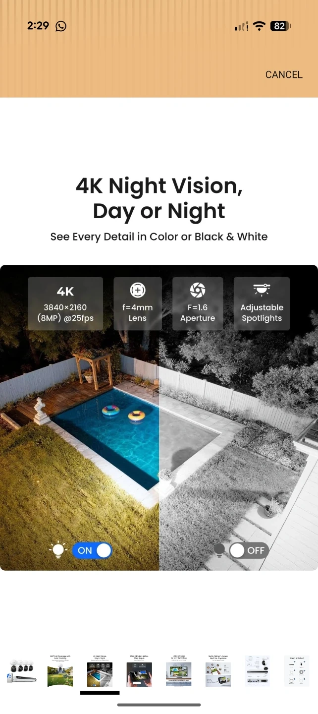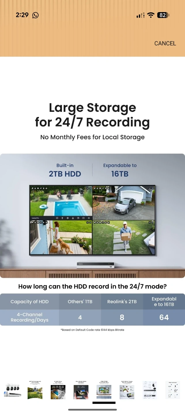 This Reolink security camera system offers 4K day or night vision with auto tracking. It features 355° pan and 50° tilt for full coverage. The system includes a 2TB HDD for local storage, expandable up to 16TB. It's built with powerful lights and sound to deter intruders.