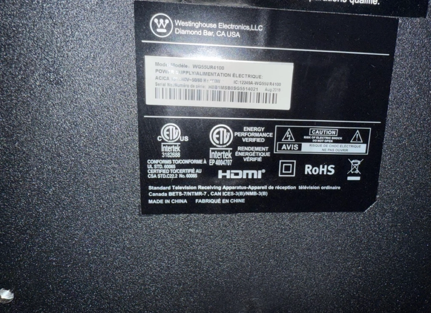 Westinghouse 55” 4K UHD Android Smart TV – Great Condition!