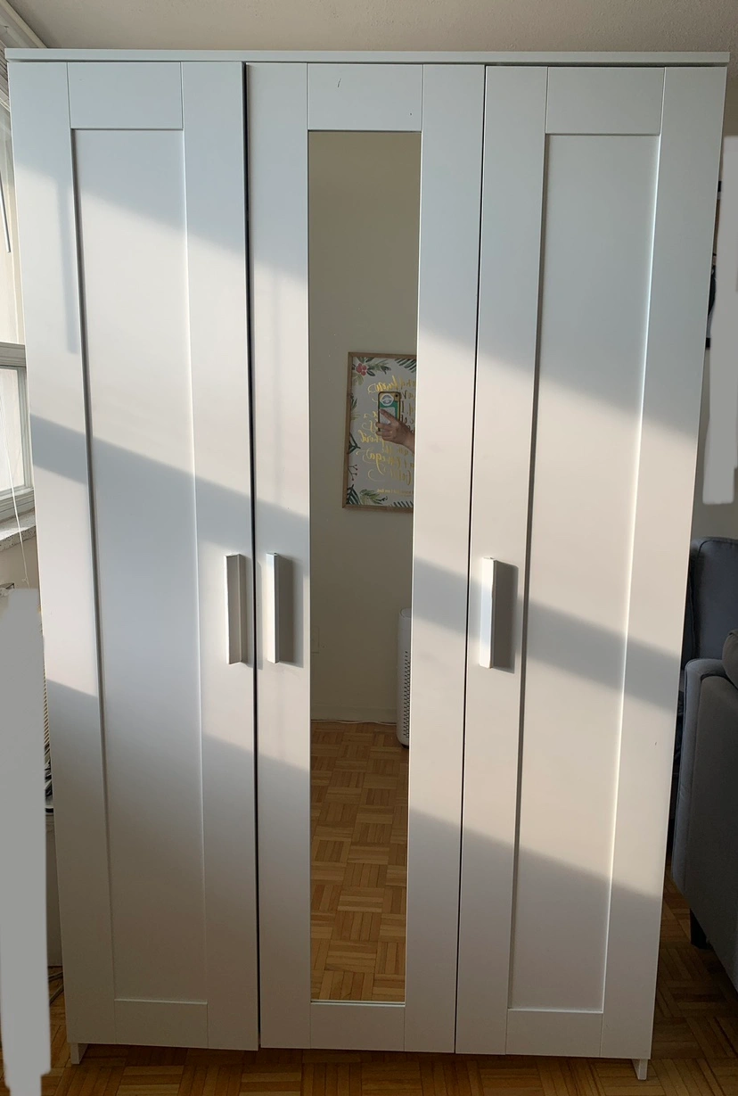 Ikea Brimnes Wardrobe with mirror. Originally $329+tax. has some visible scratches but can easily be painted. No missing or broken parts. Reason for selling: revamping!