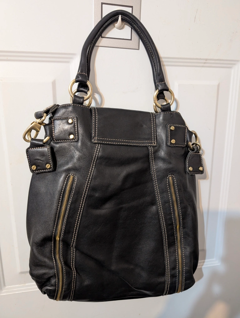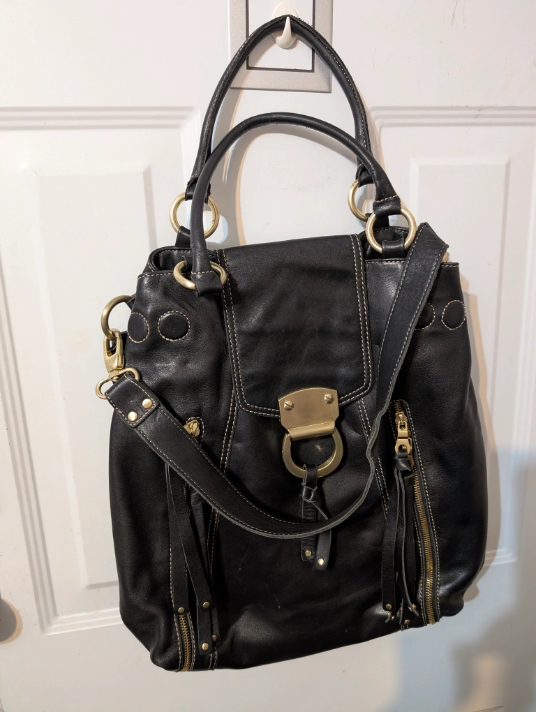 Brio! Large Black Sturdy Leather Hobo Satchel Bag