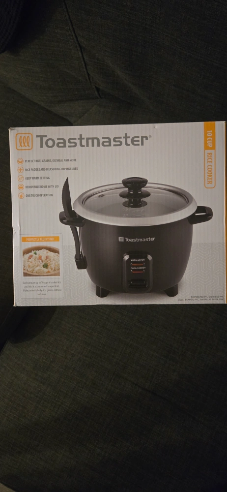 10Get perfectly cooked rice, grains, and oatmeal with this Toastmaster 10-cup rice cooker! It features a one-touch operation and a keep-warm setting, so your food stays ready to serve. The removable bowl with lid makes cleanup a breeze. Plus, it includes a rice paddle and measuring cup for your convenience