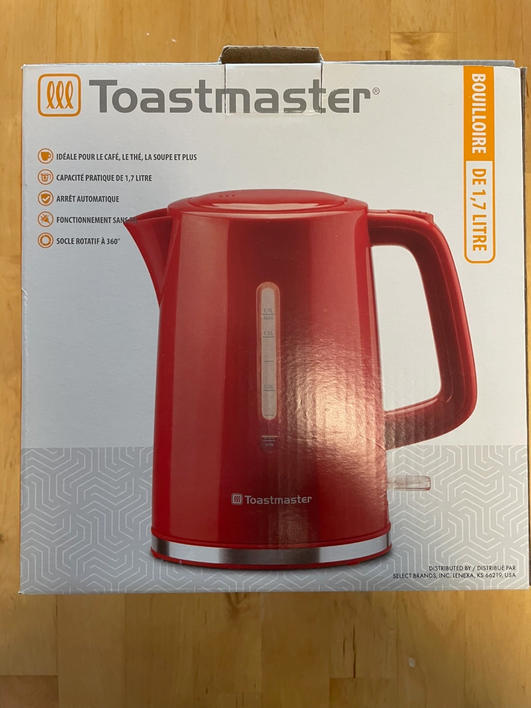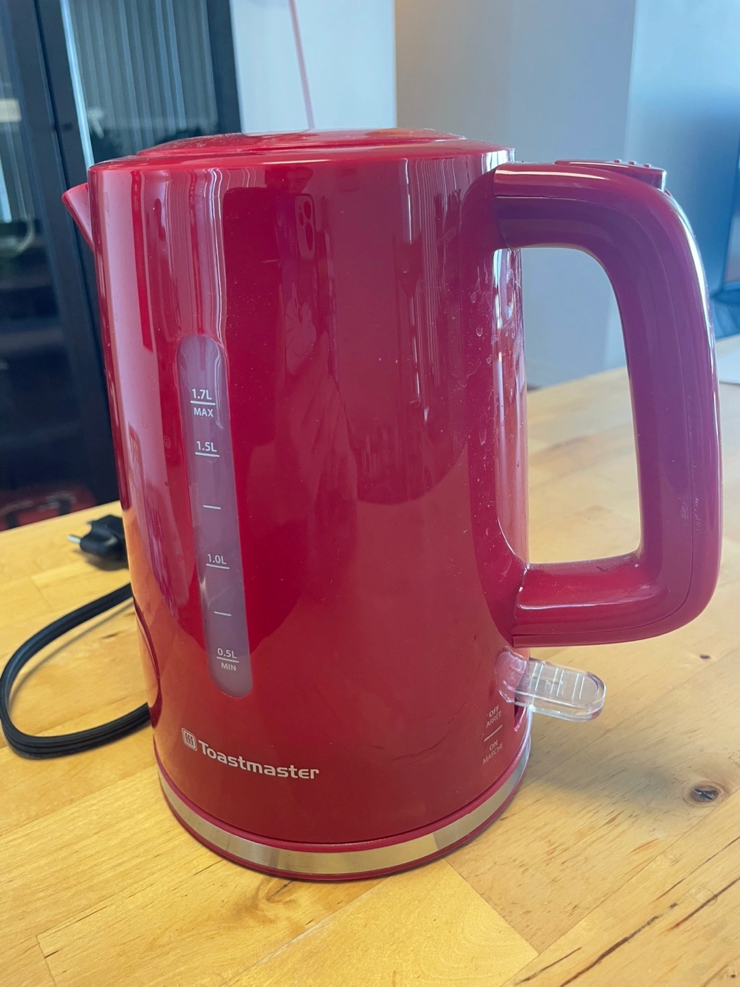 I'm selling an almost new Toastmaster electric kettle in a vibrant red colour! This kettle has a 1.7-litre capacity, perfect for making tea, coffee, or soup. It features automatic shut-off and a cordless design for easy pouring. The base rotates 360° for added convenience. It's ready to heat up your favourite beverages!