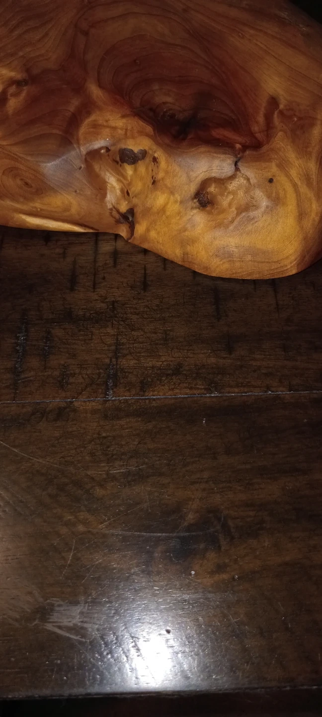 Handcrafted wooden serving board with a unique, natural shape. Made from solid wood, it showcases beautiful grain patterns. Perfect for serving appetizers or as a decorative piece on your table.