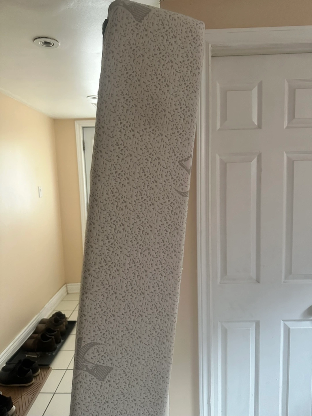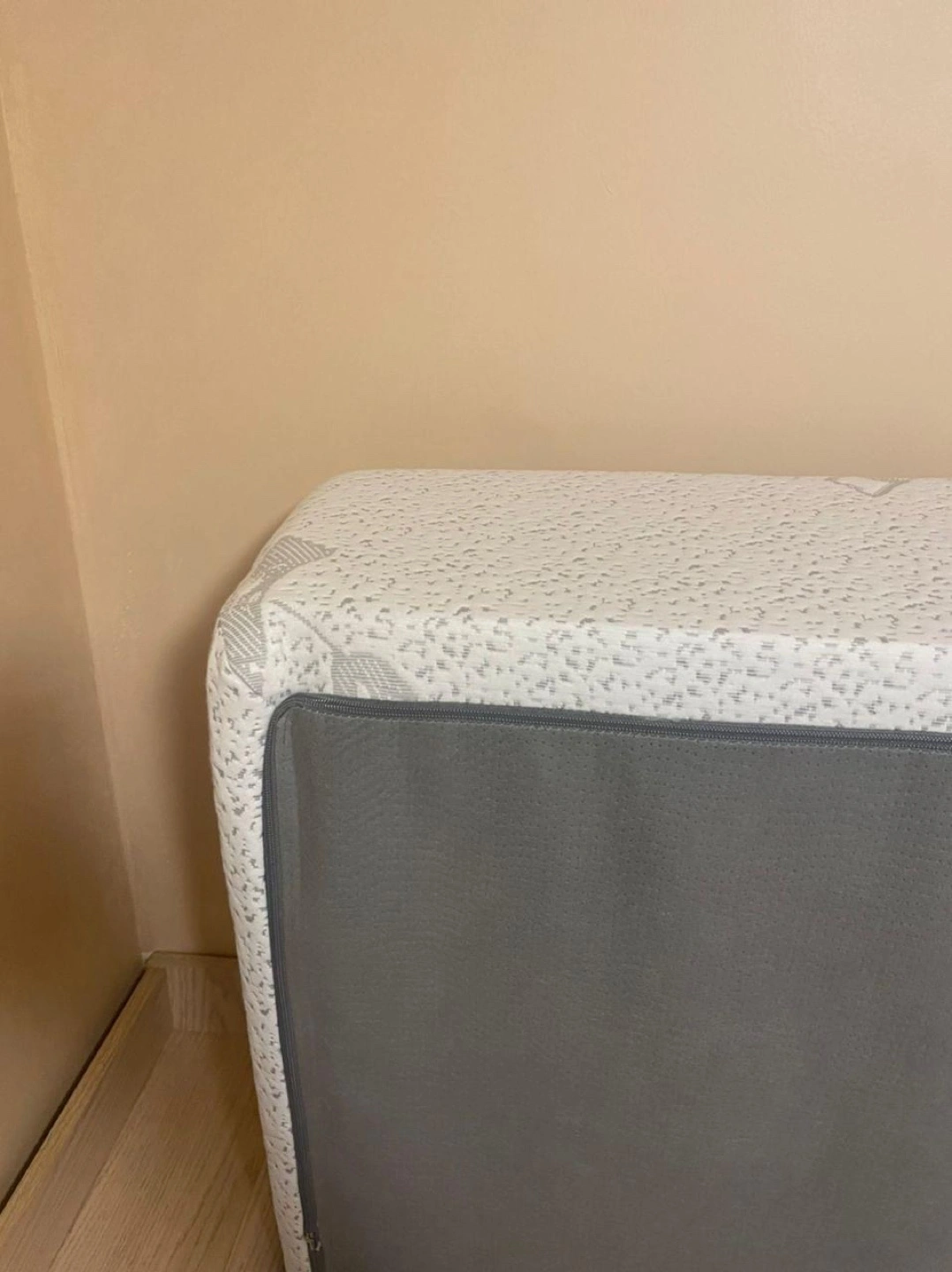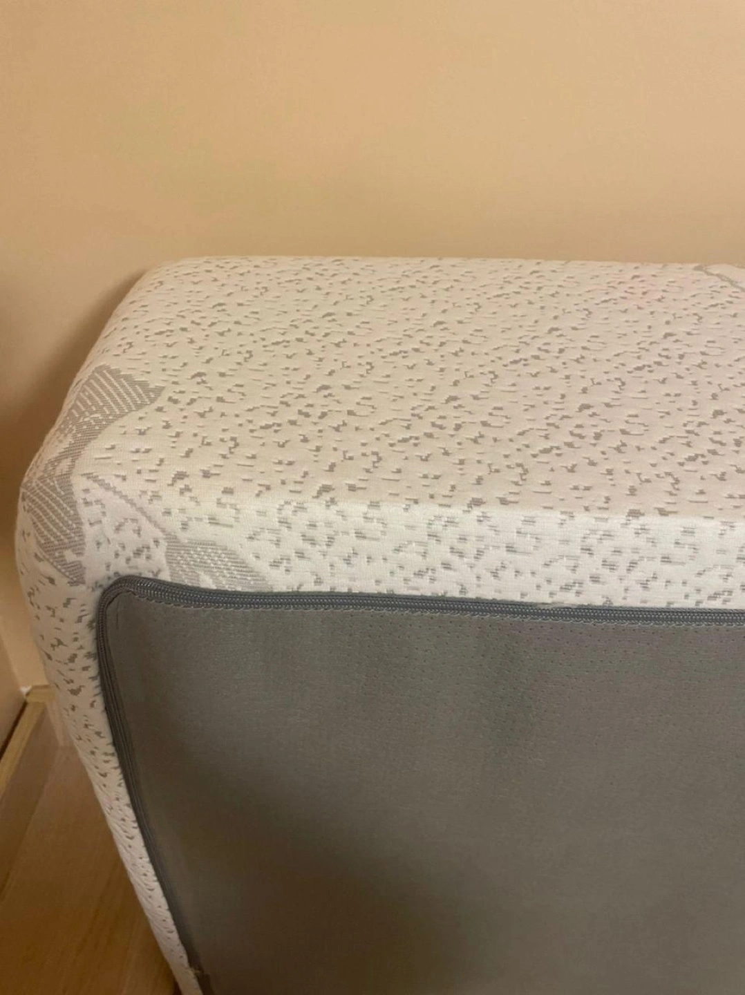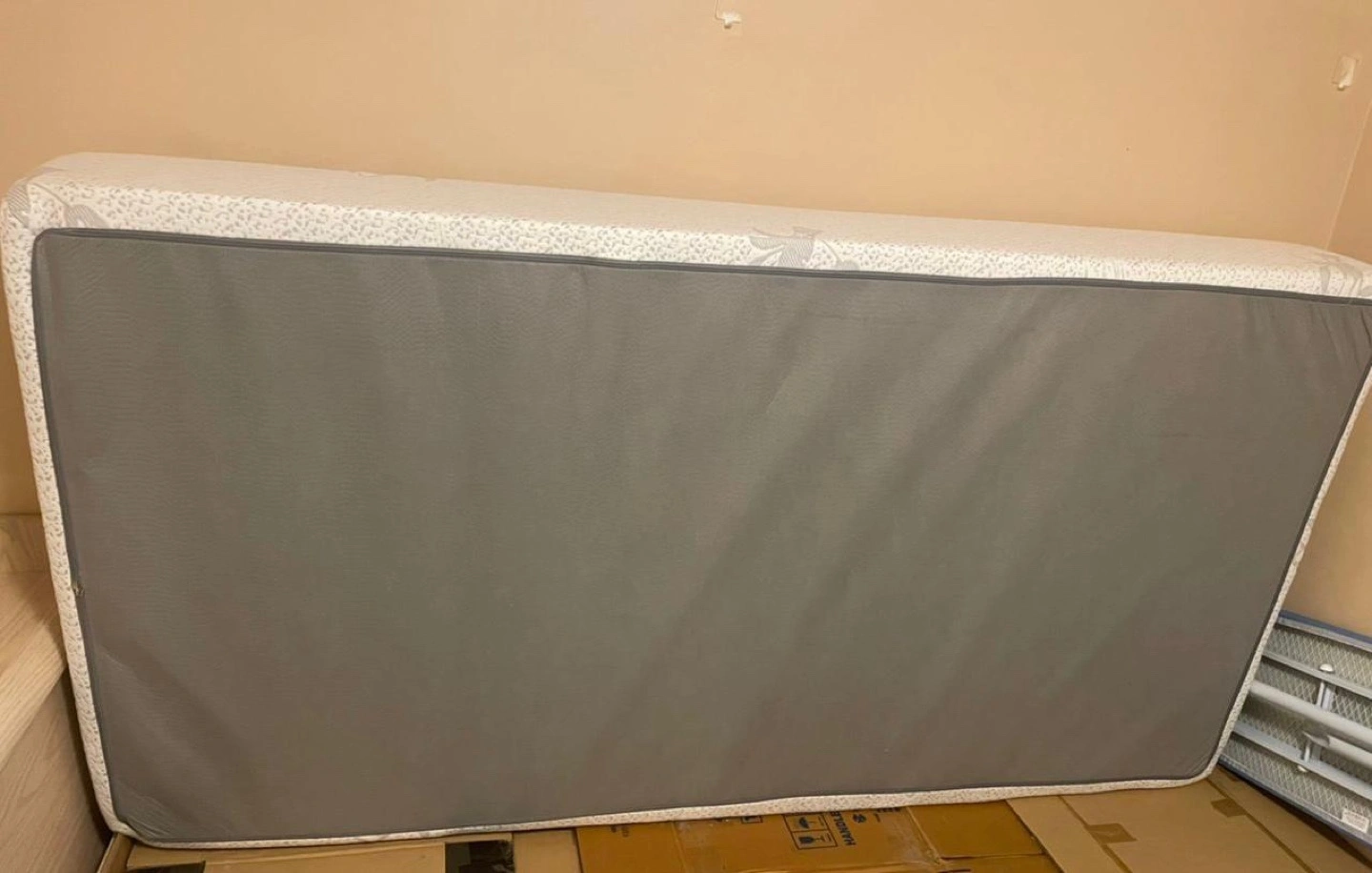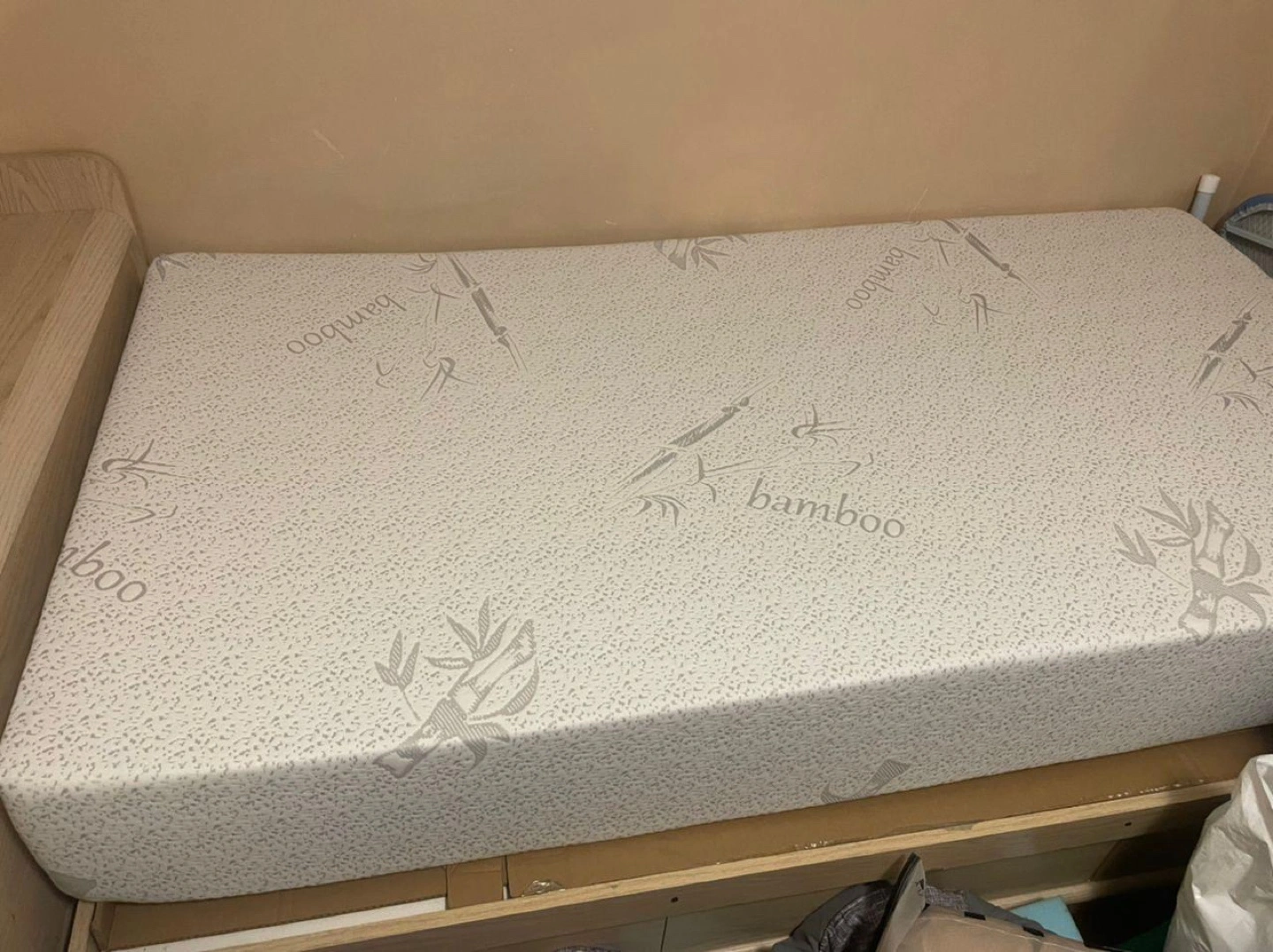 Twin size mattress topper. Grey fabric bottom. Bamboo top. Good condition.