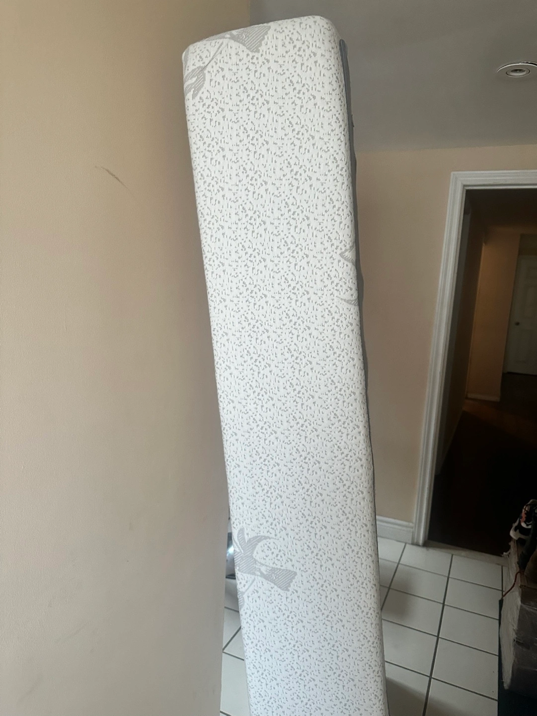 Twin size mattress topper. Grey fabric bottom. Bamboo top. Good condition.