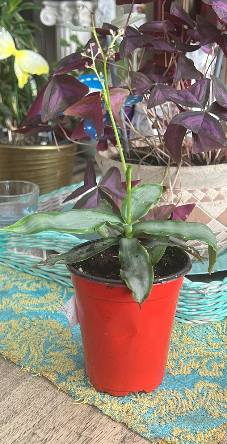 I'm selling a lovely Callisia fragans plant in a bright red pot! It's a healthy plant ready to brighten up your space. The plant has beautiful green and silver striped leaves. A great addition to any plant lover's collection