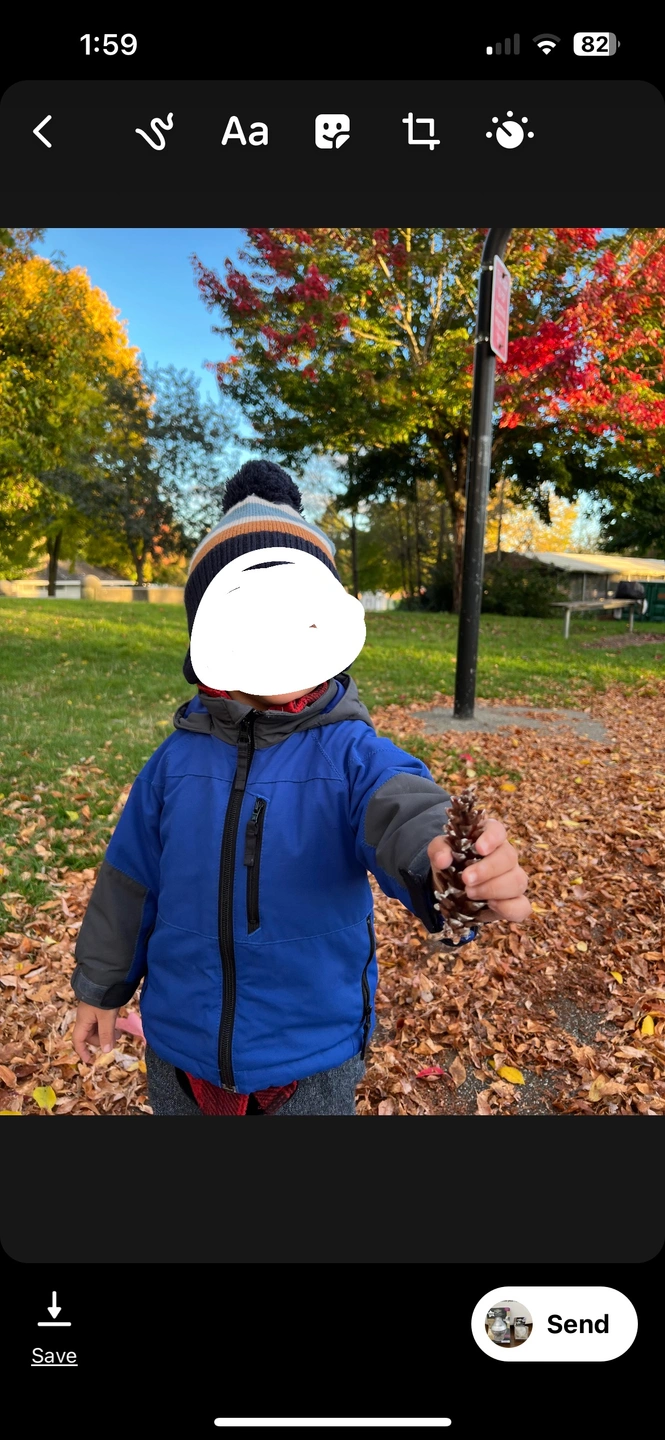 85Blue and gray toddler winter jacket. Size not specified. Good condition. Features a zipper closure and pockets.