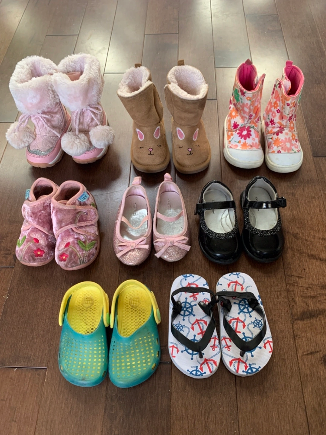 8 pairs of Toddler Girl Shoes. Size 4 In good/ fair used condition. Selling all together for $35, not separating. Price is firm. From pet-free and smoke-free home. Pickup in Millwoods. Cash only upon pickup