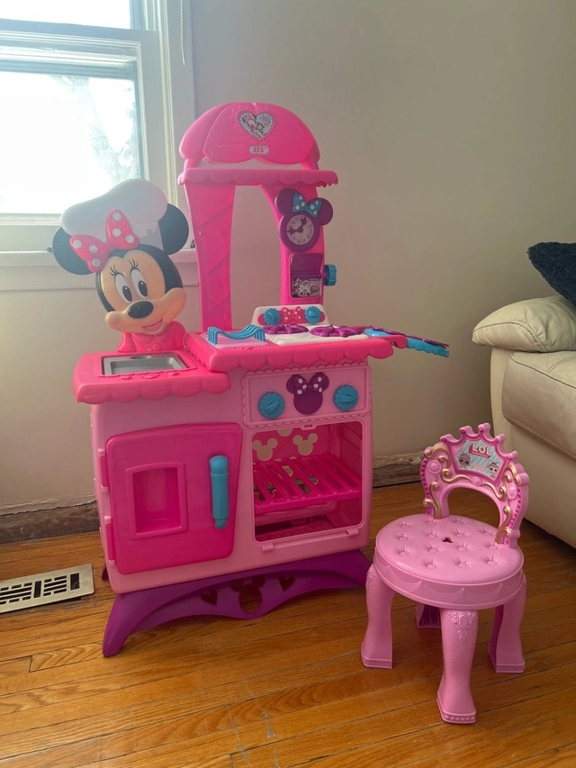 The play kitchen is in good, used condition and ready for hours of fun. It comes with a Little Tikes Frozen Ice Castle Kitchen as well! All in good shape. Cash accepted.