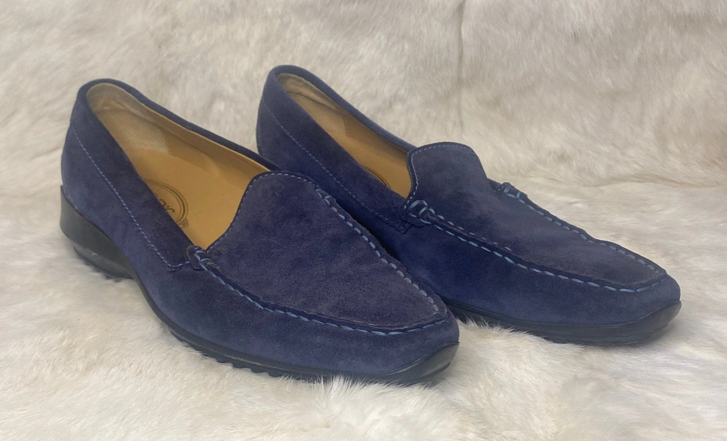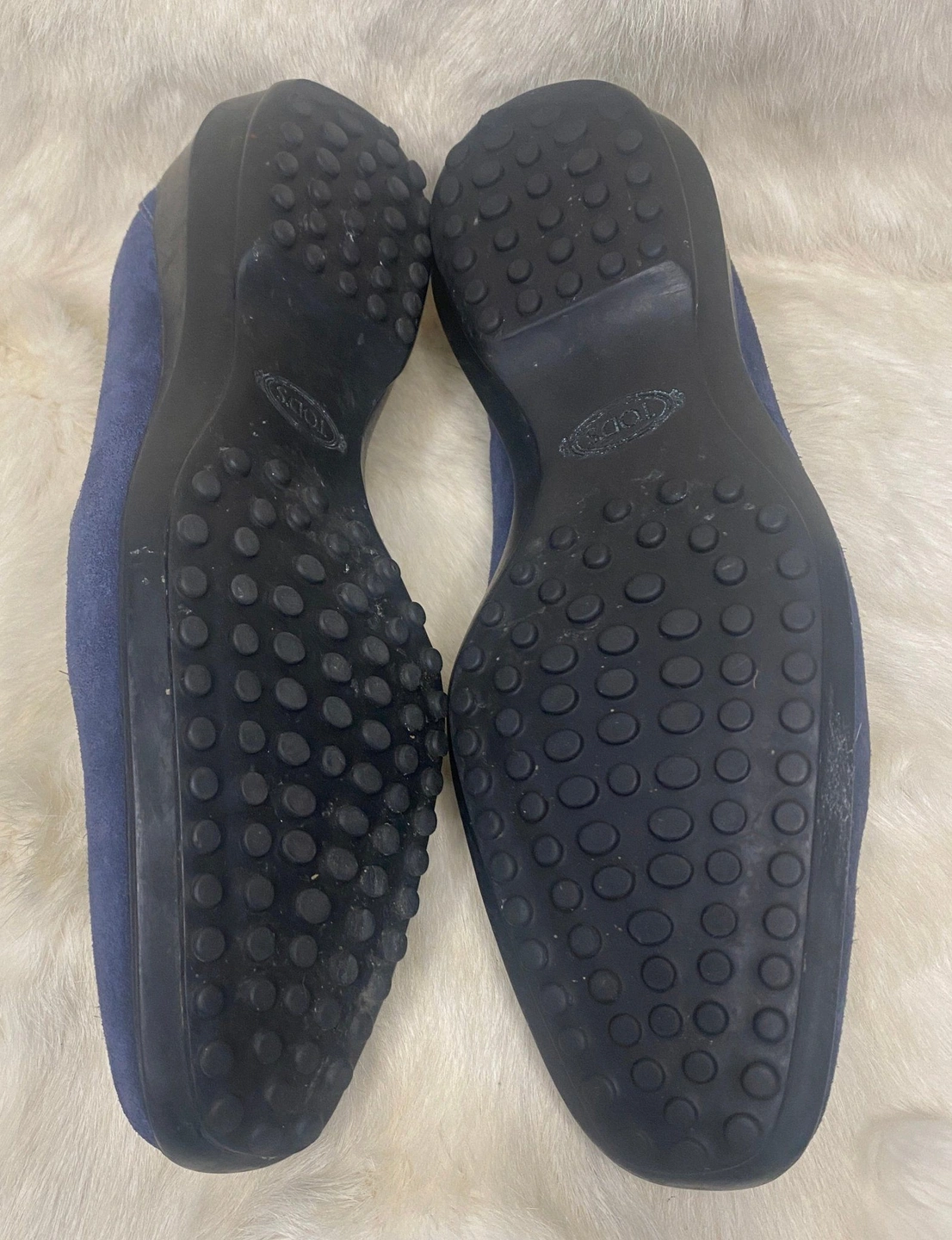 Tods Pantofola City Gommino Women’s Blue Suede Loafers 7-1/2