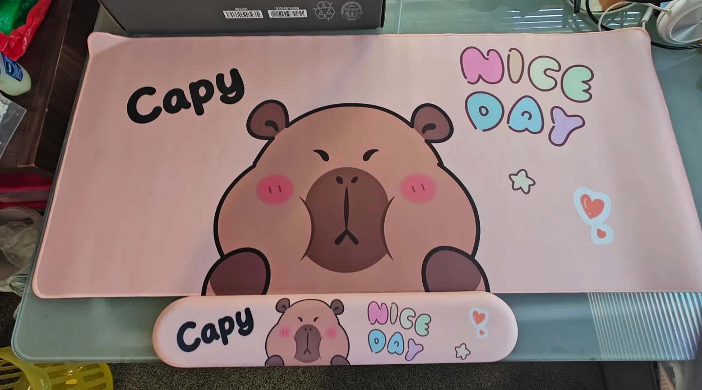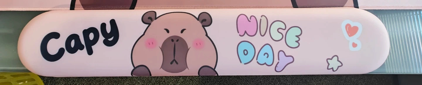 Selling a cute 'Capy' mousepad with a 'Nice Day' design! It comes with a matching wrist rest for extra comfort while you work or game. Perfect for adding a touch of fun to your desk setup.