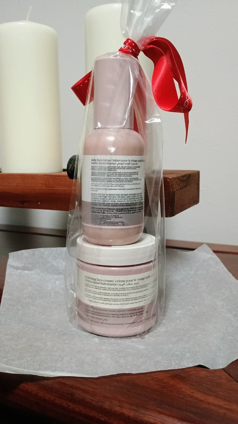 This set includes Bath & Body Works daily face lotion and hydrating face cream. The lotion comes in a 100ml/3.4 fl. oz. bottle, and the cream is in a 4 oz. jar. It's a nice skincare duo!